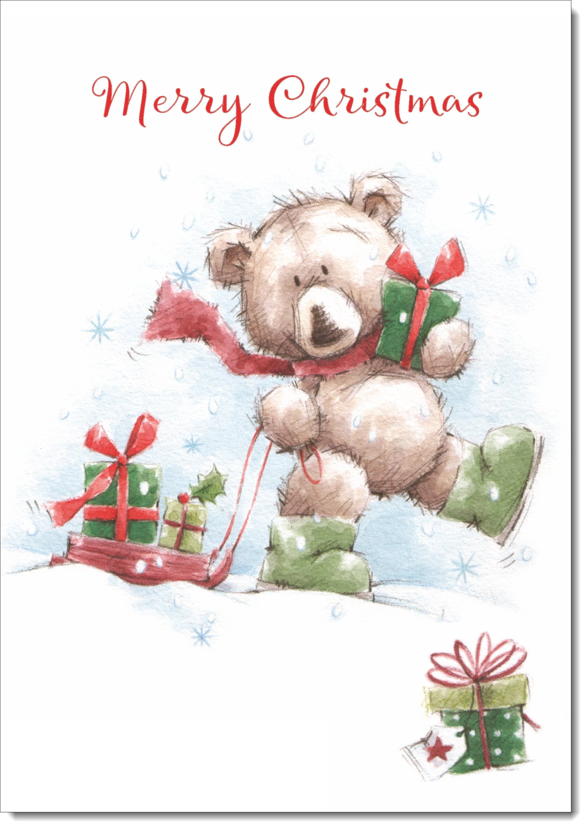 Merry Christmas Card Cute Bear with Sled