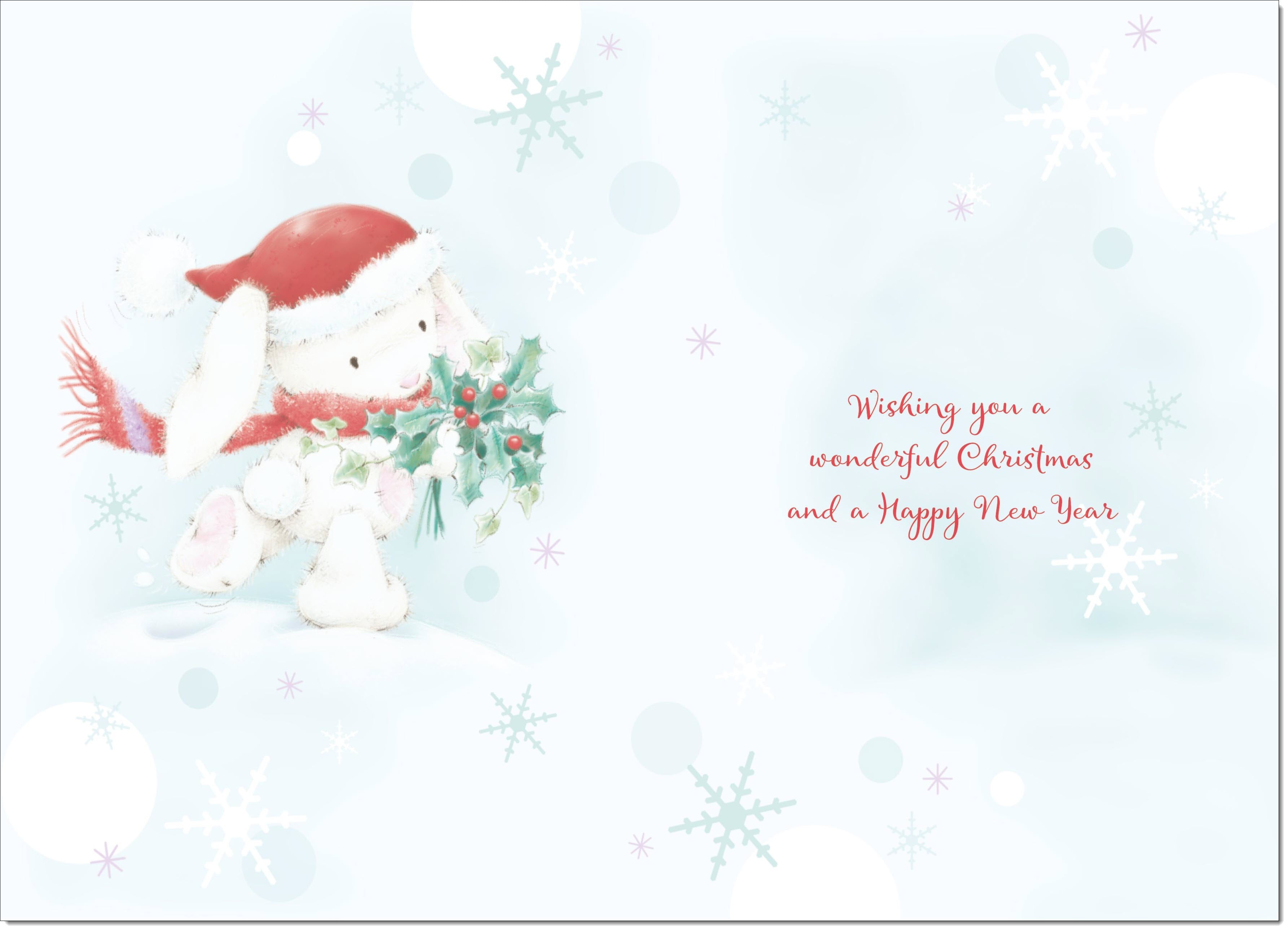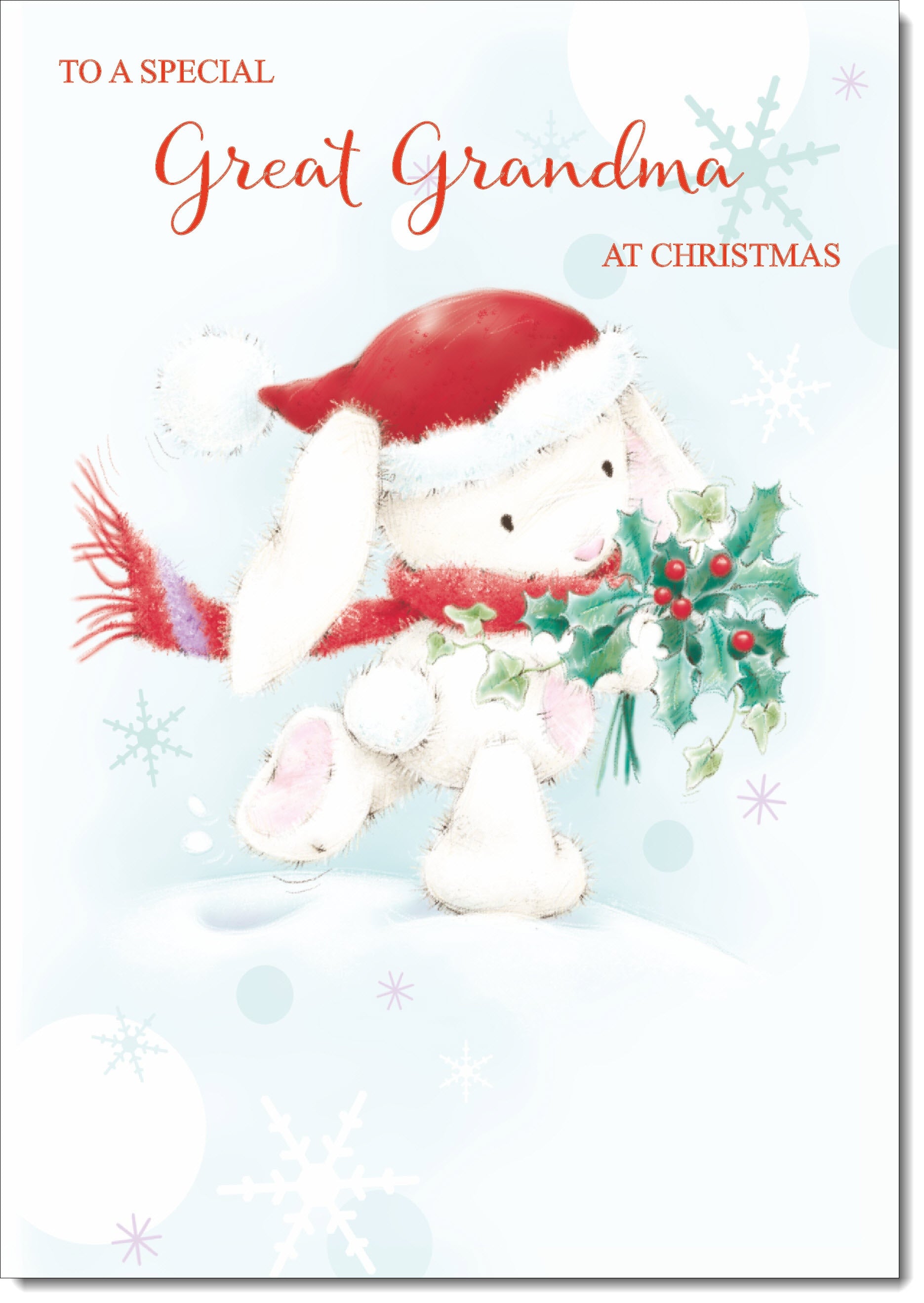 Great Grandma Christmas Card Cute Rabbit with Holly