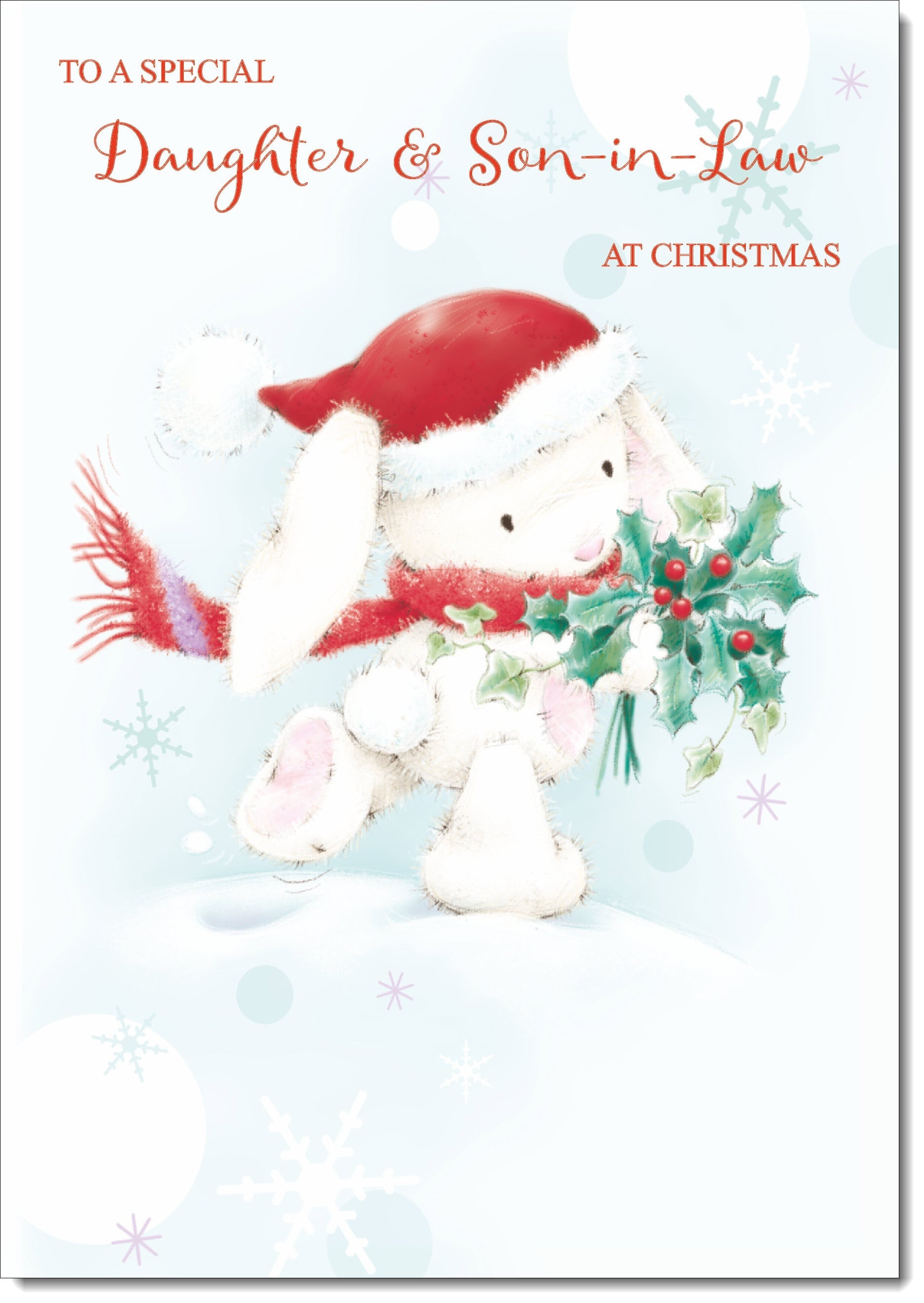 Daughter & Son-in-Law Christmas Card Cute Rabbit with Holly