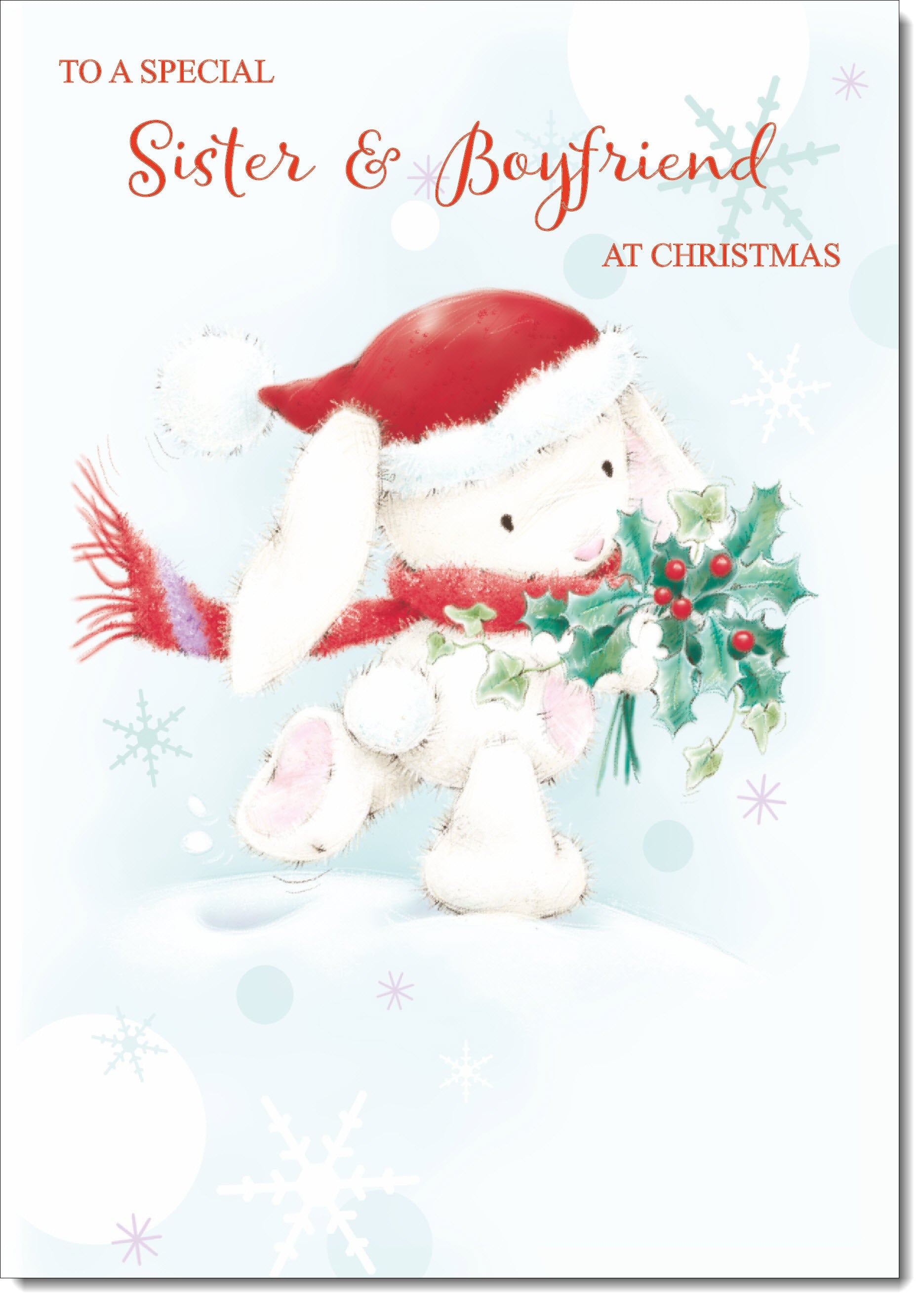 Sister & Boyfriend Christmas Card Cute Rabbit with Holly