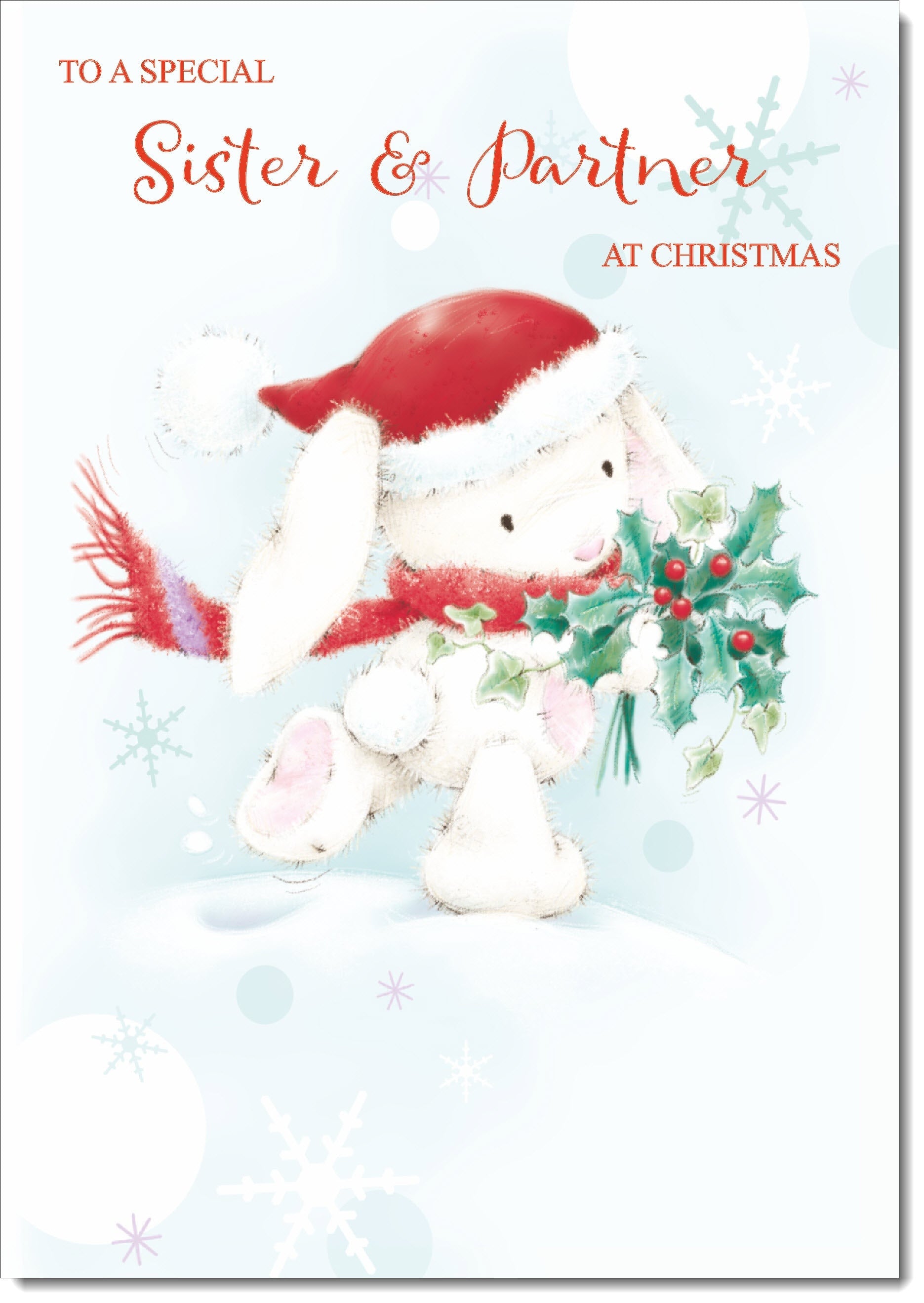 Sister & Partner Christmas Card Cute Rabbit with Holly