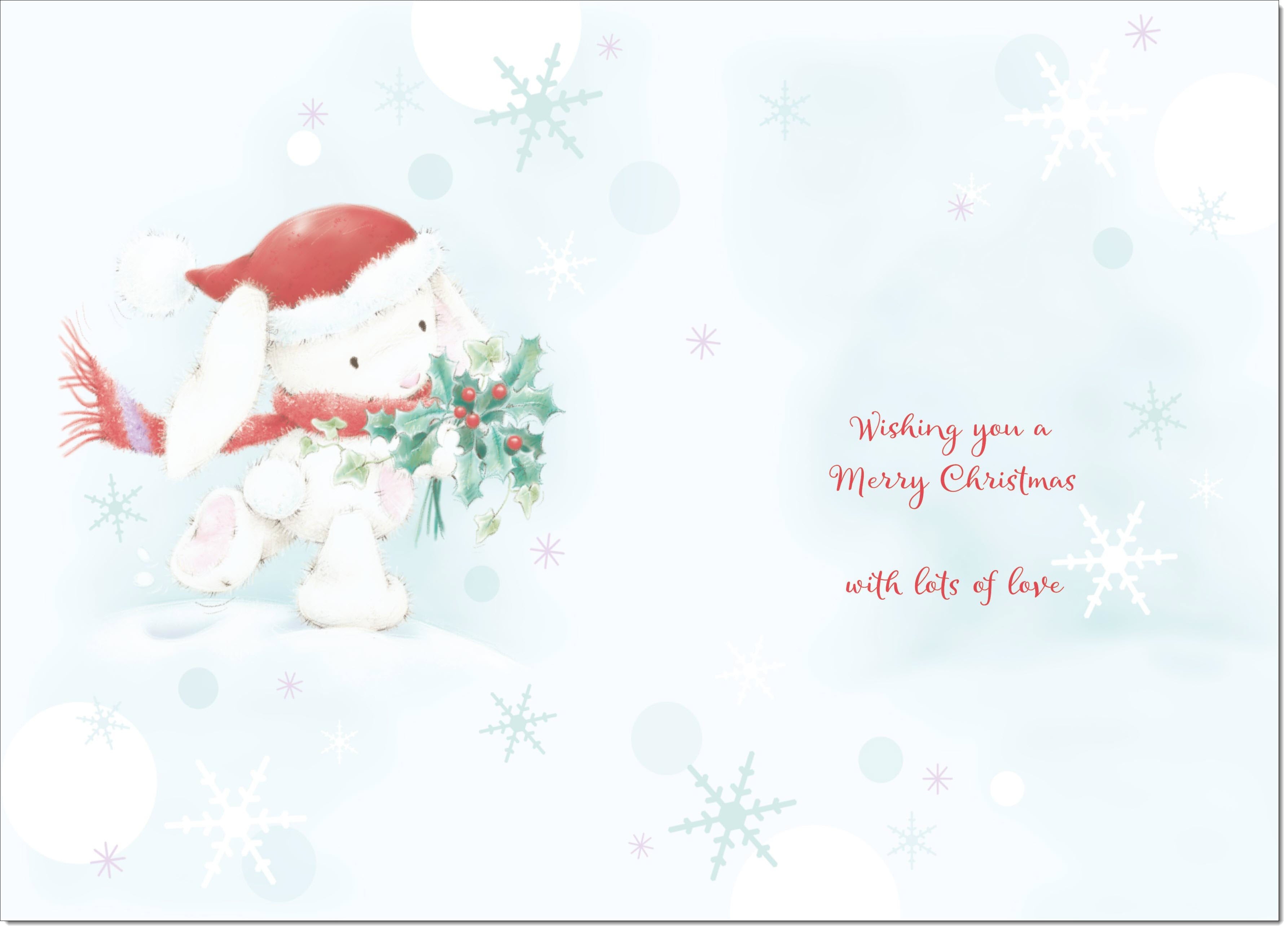 Special Girl Christmas Card Cute Rabbit with Holly