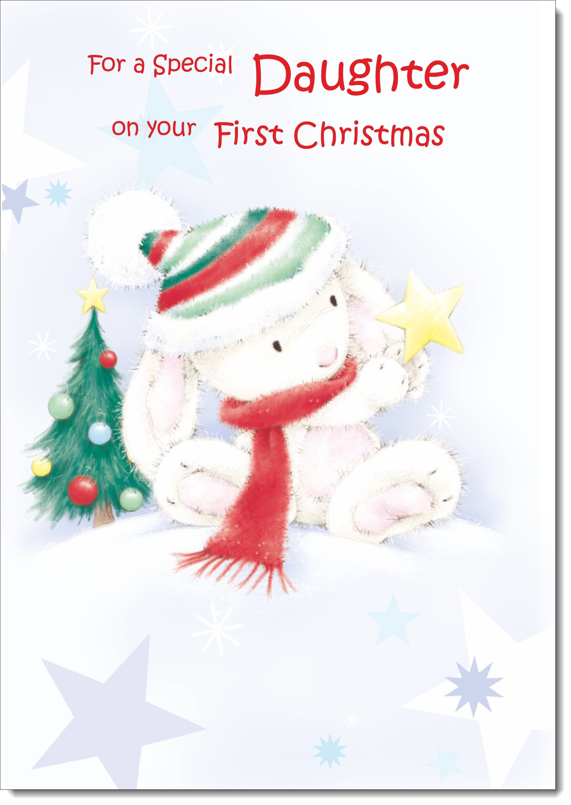 Daughter 1st Christmas Card Cute Rabbit with Star