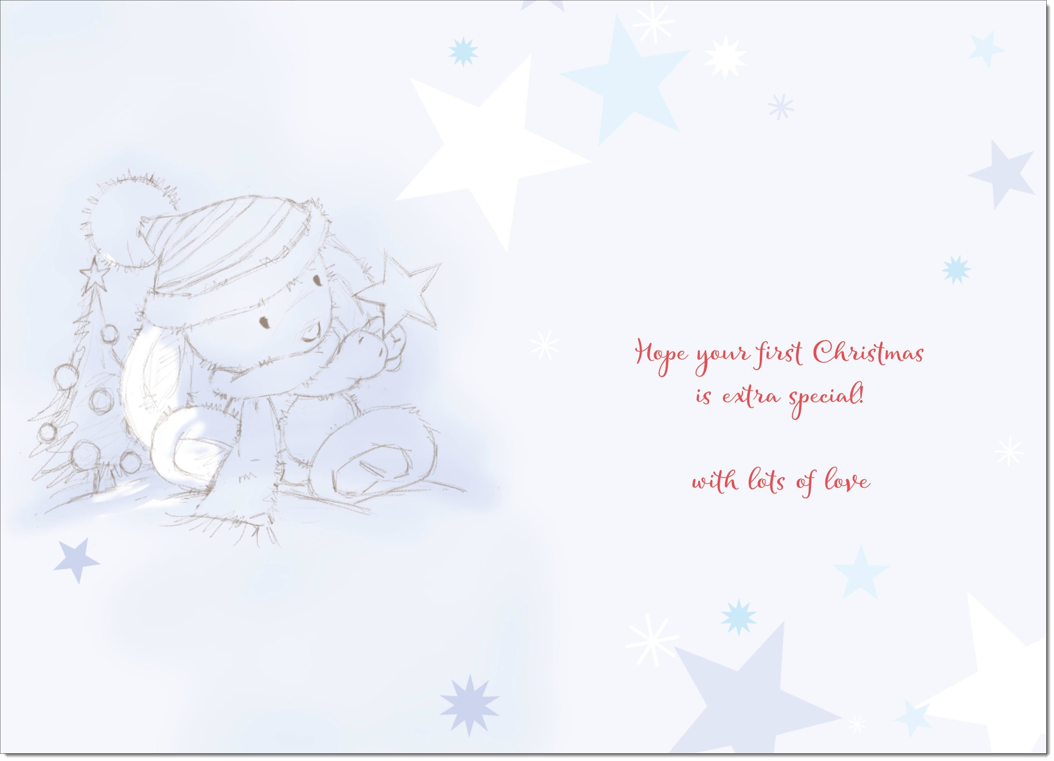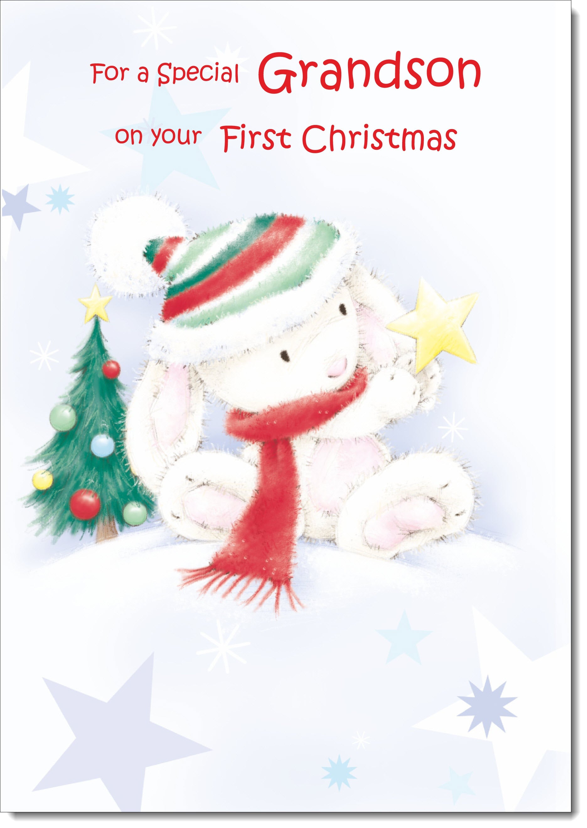 Grandsons 1st Christmas Card Cute Rabbit with Star