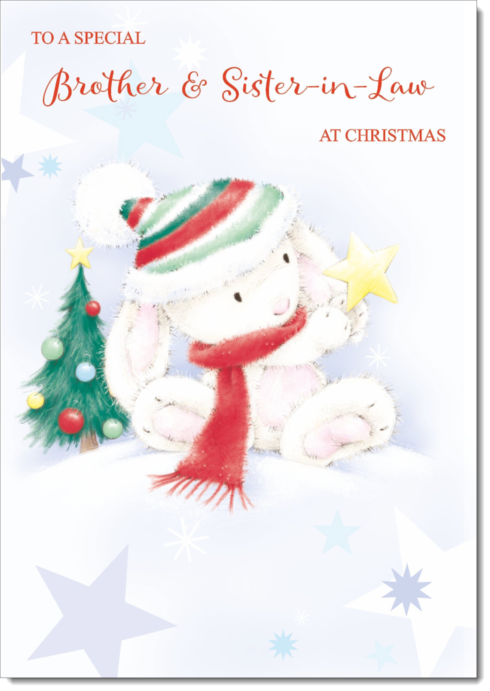 Brother & Sister-in-Law Christmas Card Cute Rabbit with Star