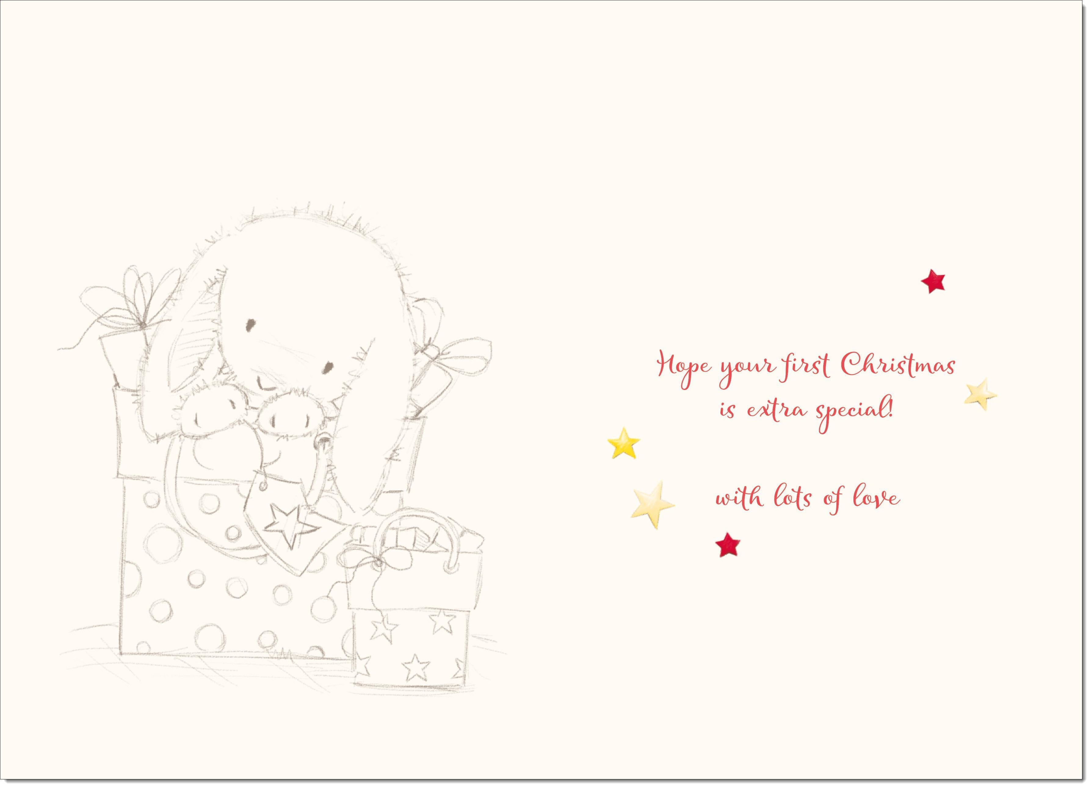 Great Grandsons 1st Christmas Card Cute Rabbit with Parcels