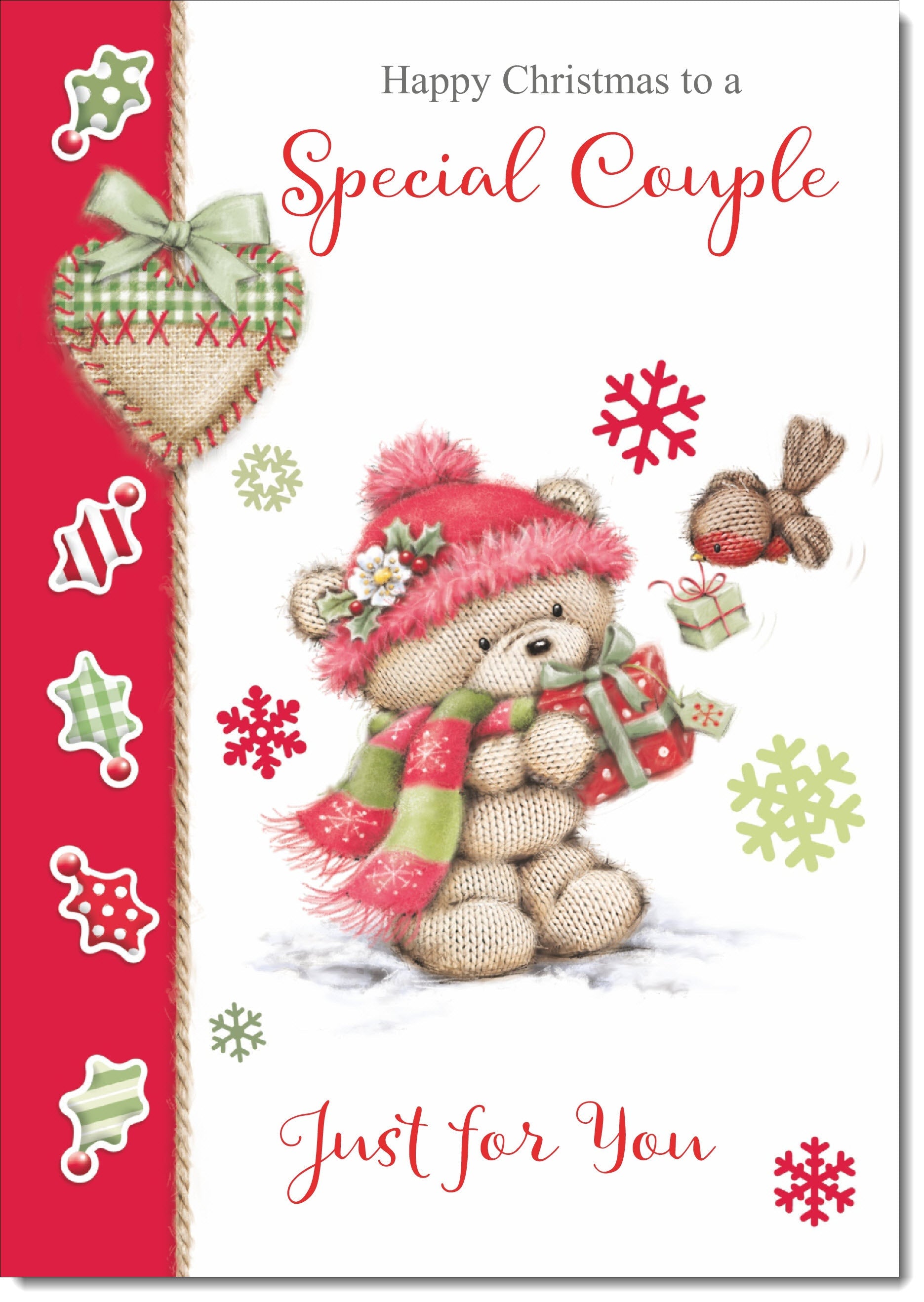 Special Couple Christmas Card Cute Bear in Pink Bobble Hat