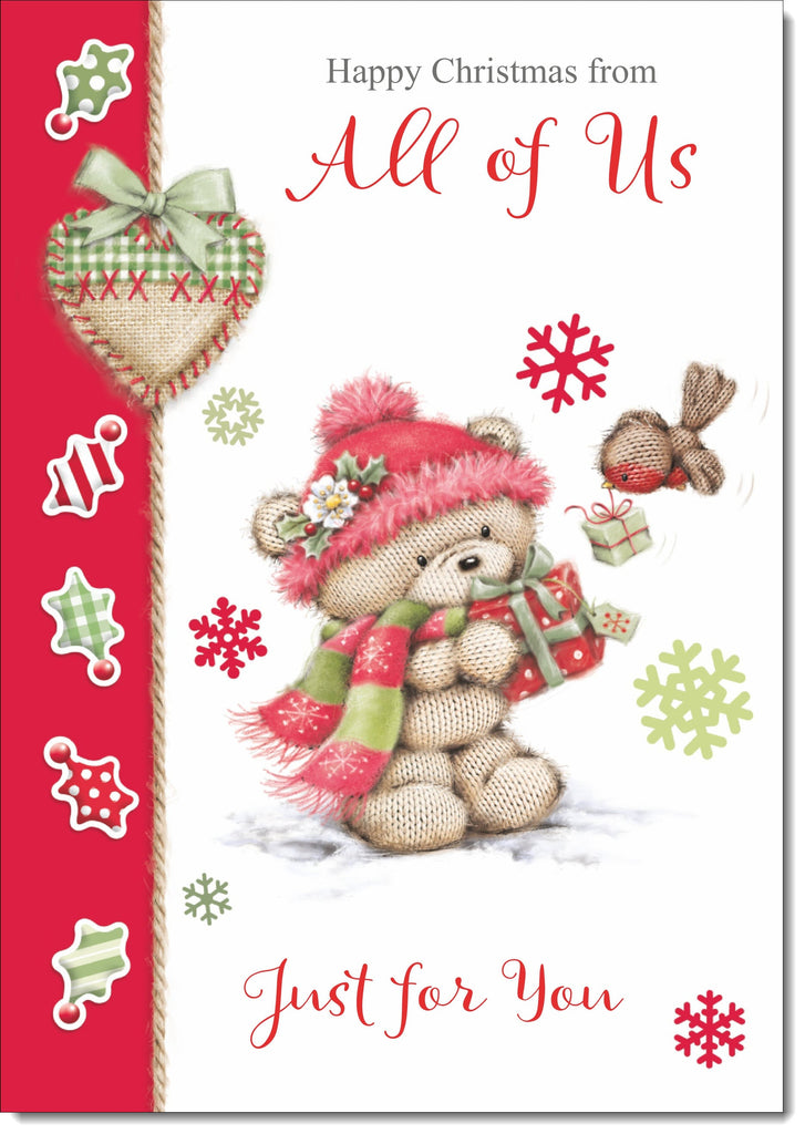 From All Of Us Christmas Card Cute Bear in Pink Bobble Hat