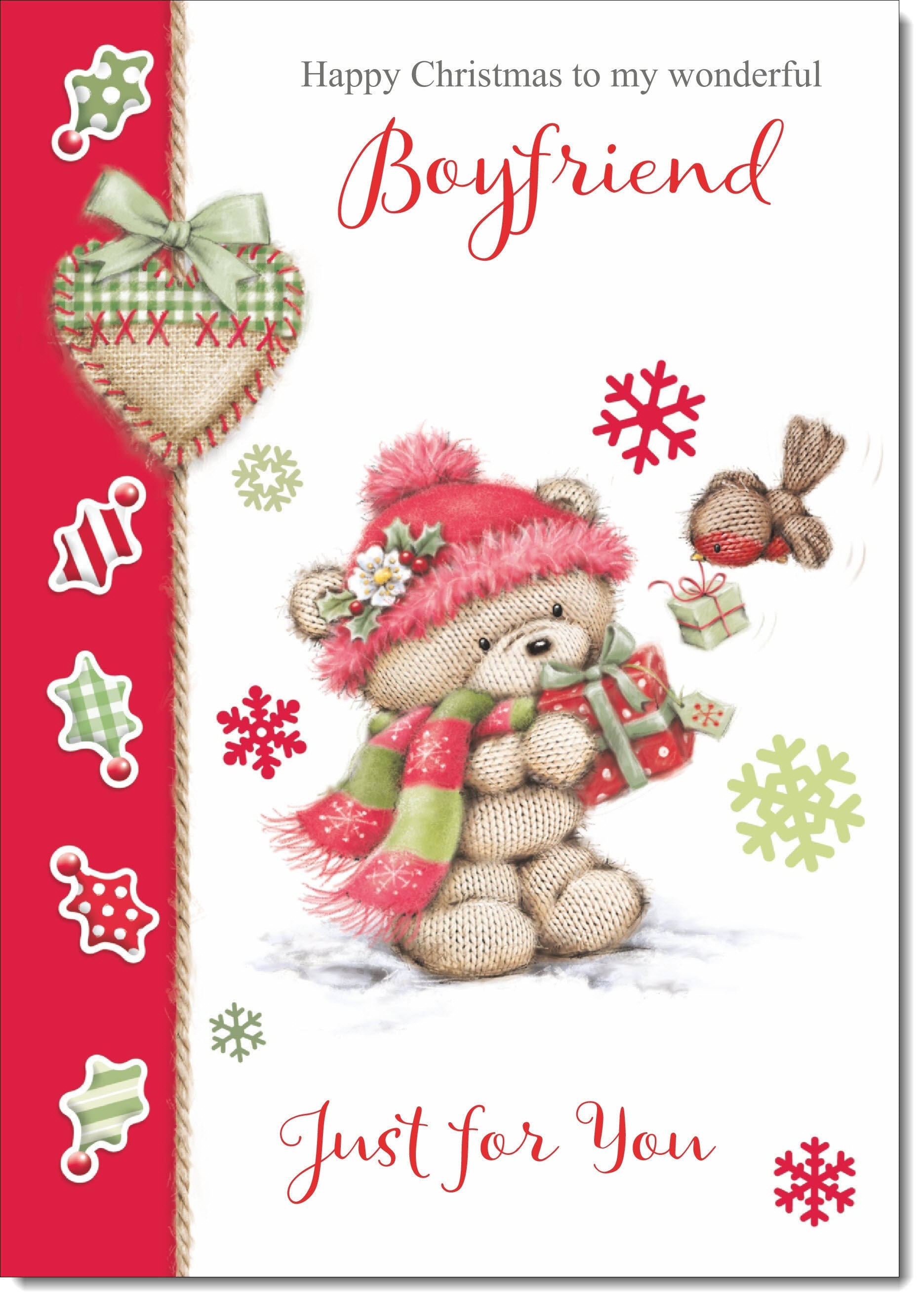 Boyfriend Christmas Card Cute Bear in Pink Bobble Hat