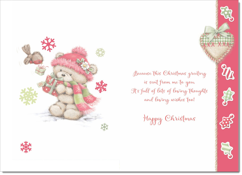 Girlfriend Christmas Card Cute Bear in Pink Bobble Hat