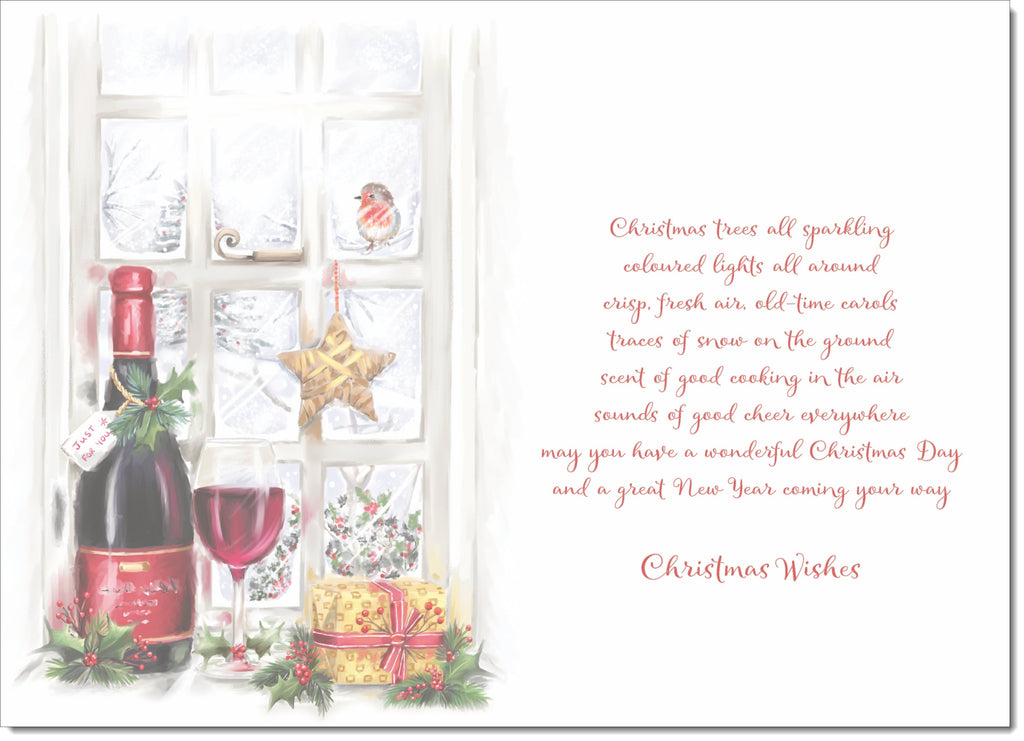 Sister & Brother-in-Law Christmas Card Red Wine Christmas Scene