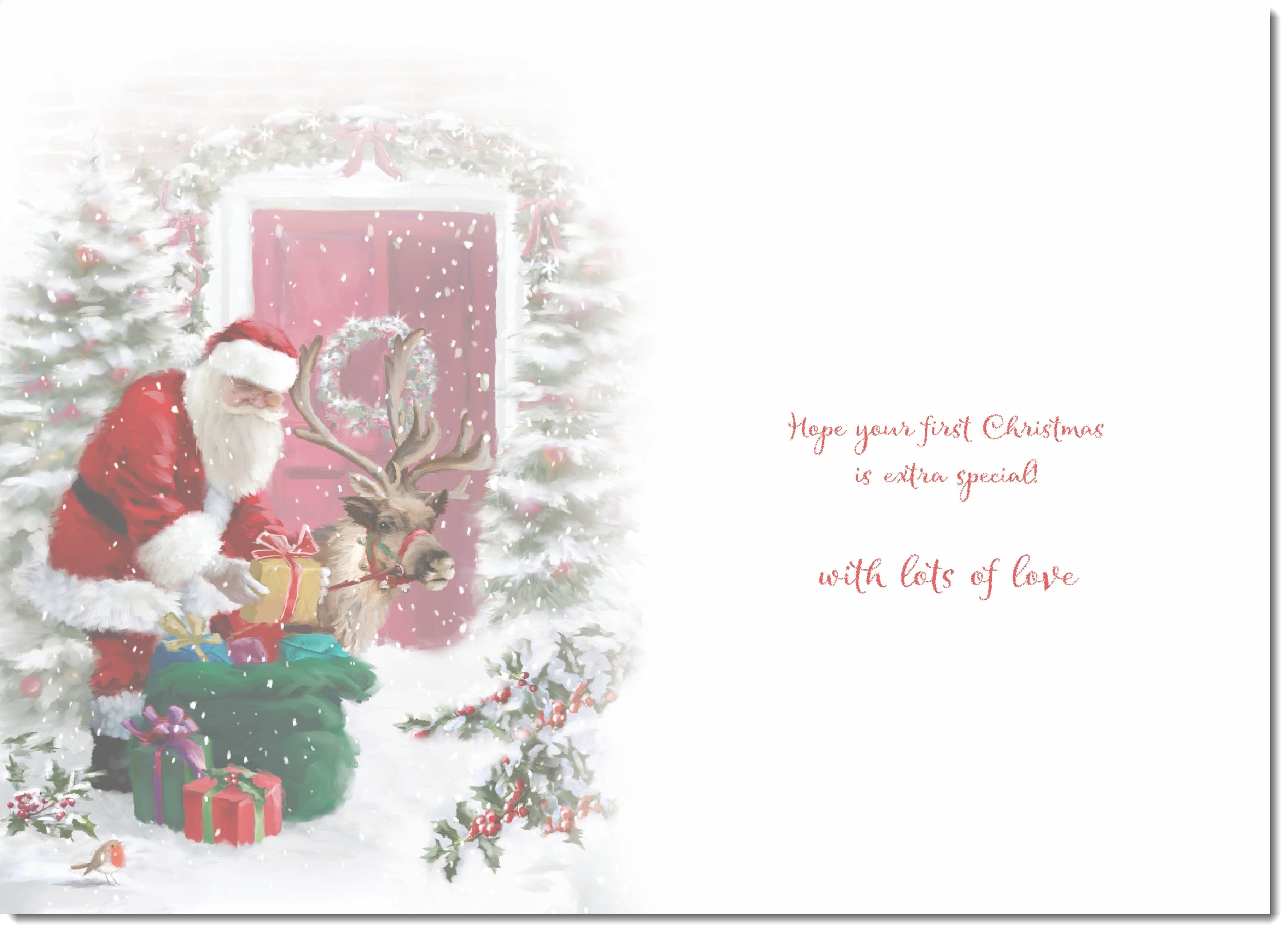 Great Grandsons 1st Christmas Card Santa's Bag of Presents