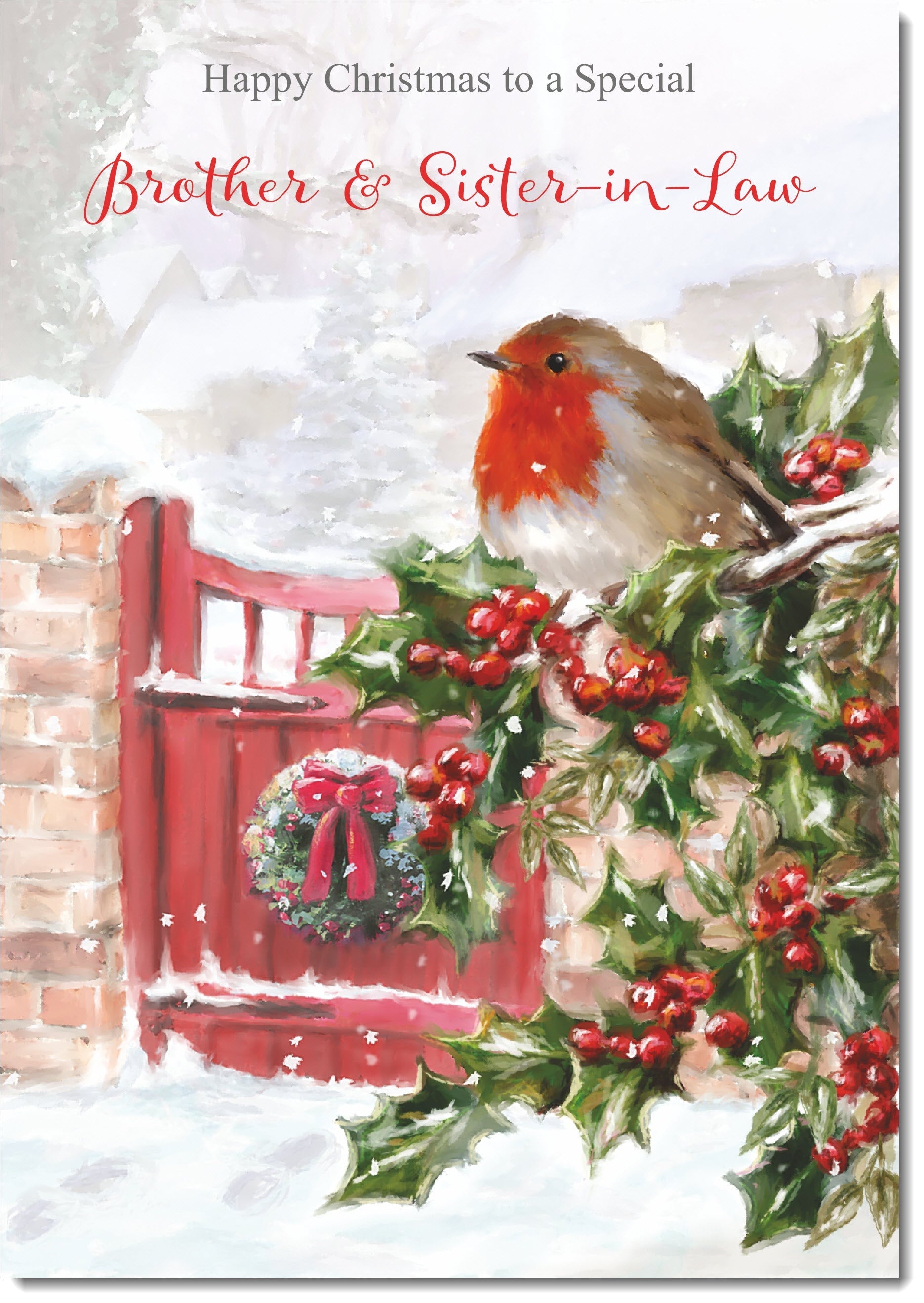 Brother & Sister-in-Law Christmas Card Robin on Holly Tree