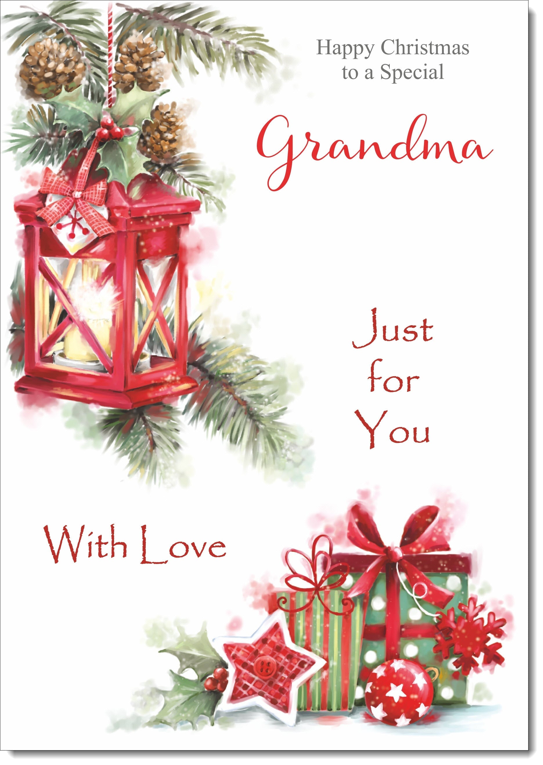 Grandma Christmas Card Red Lantern & Christmas Presents