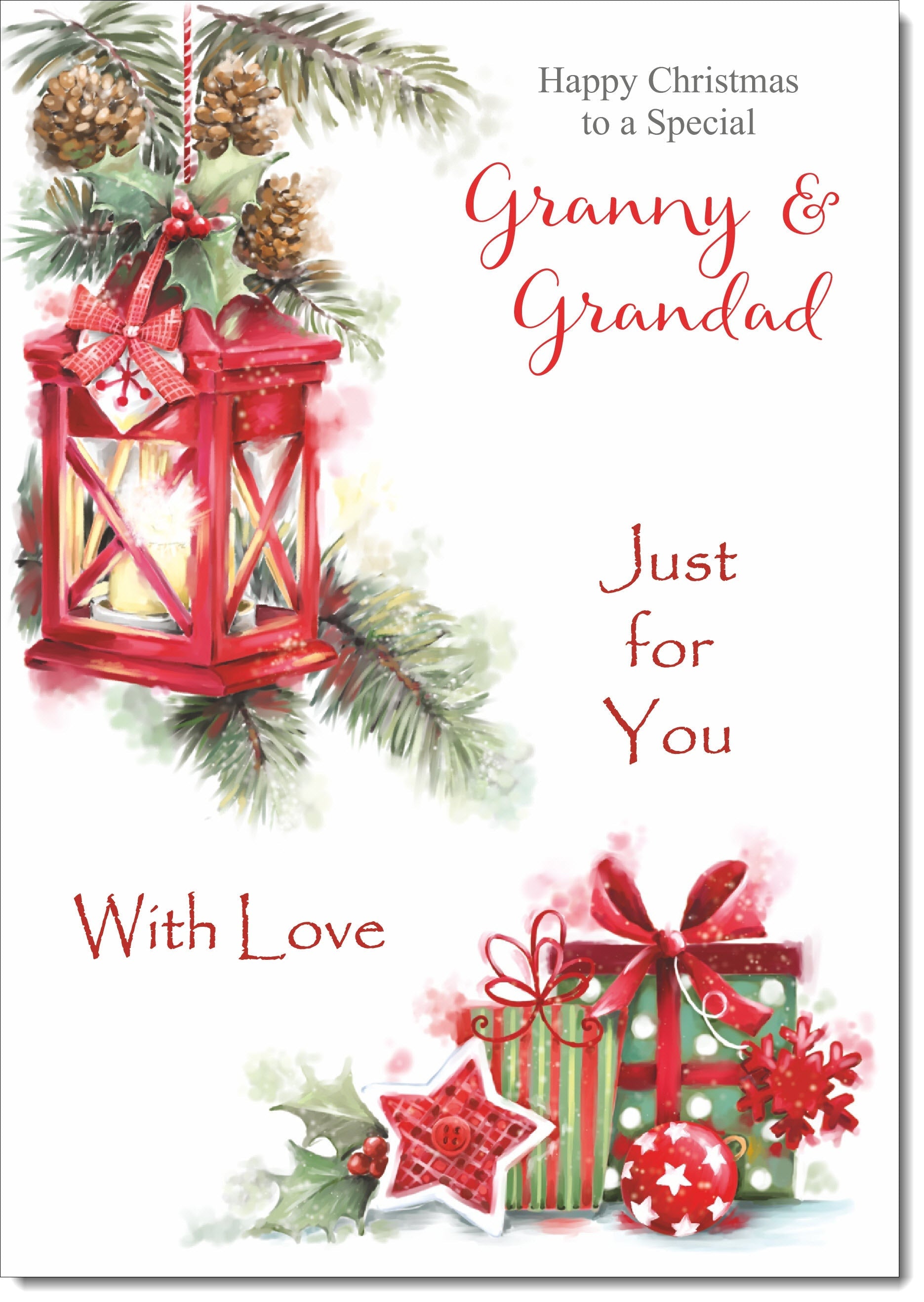 Granny & Grandad Christmas Card Red Lantern & Christmas Presents