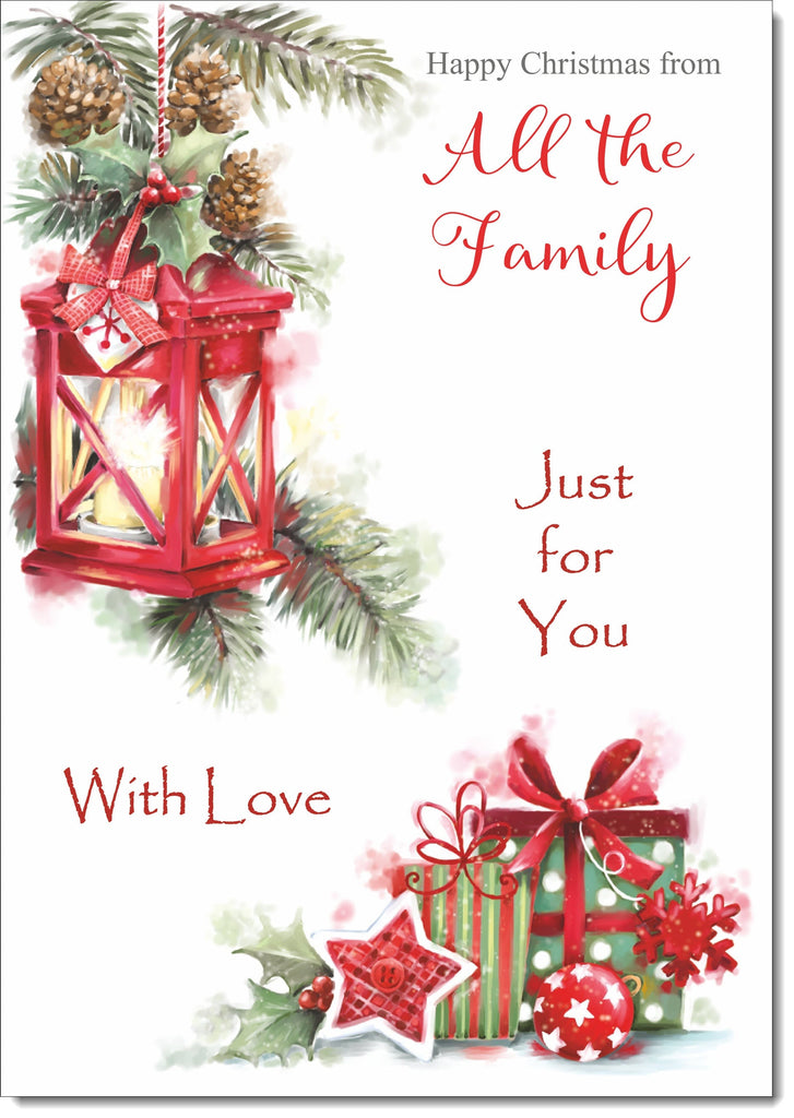 From All The Family Christmas Card Red Lantern & Christmas Presents