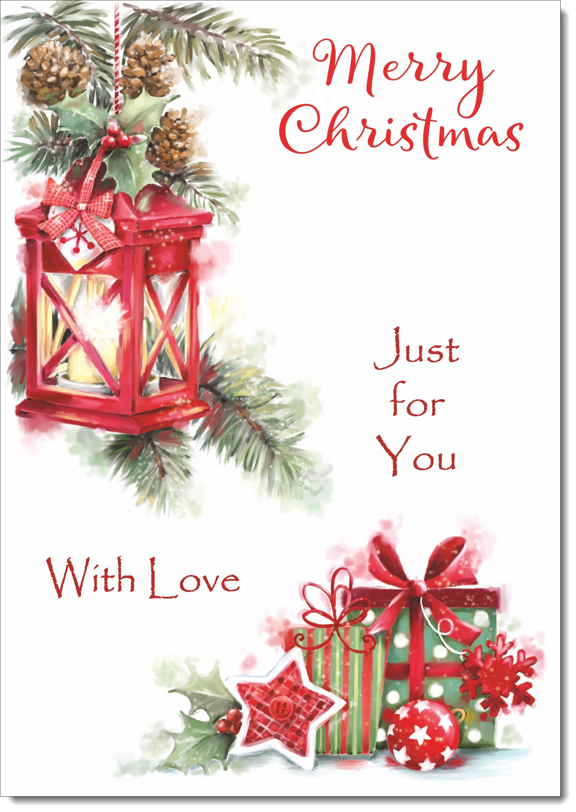 Merry Christmas Card Red Lantern & Christmas Presents