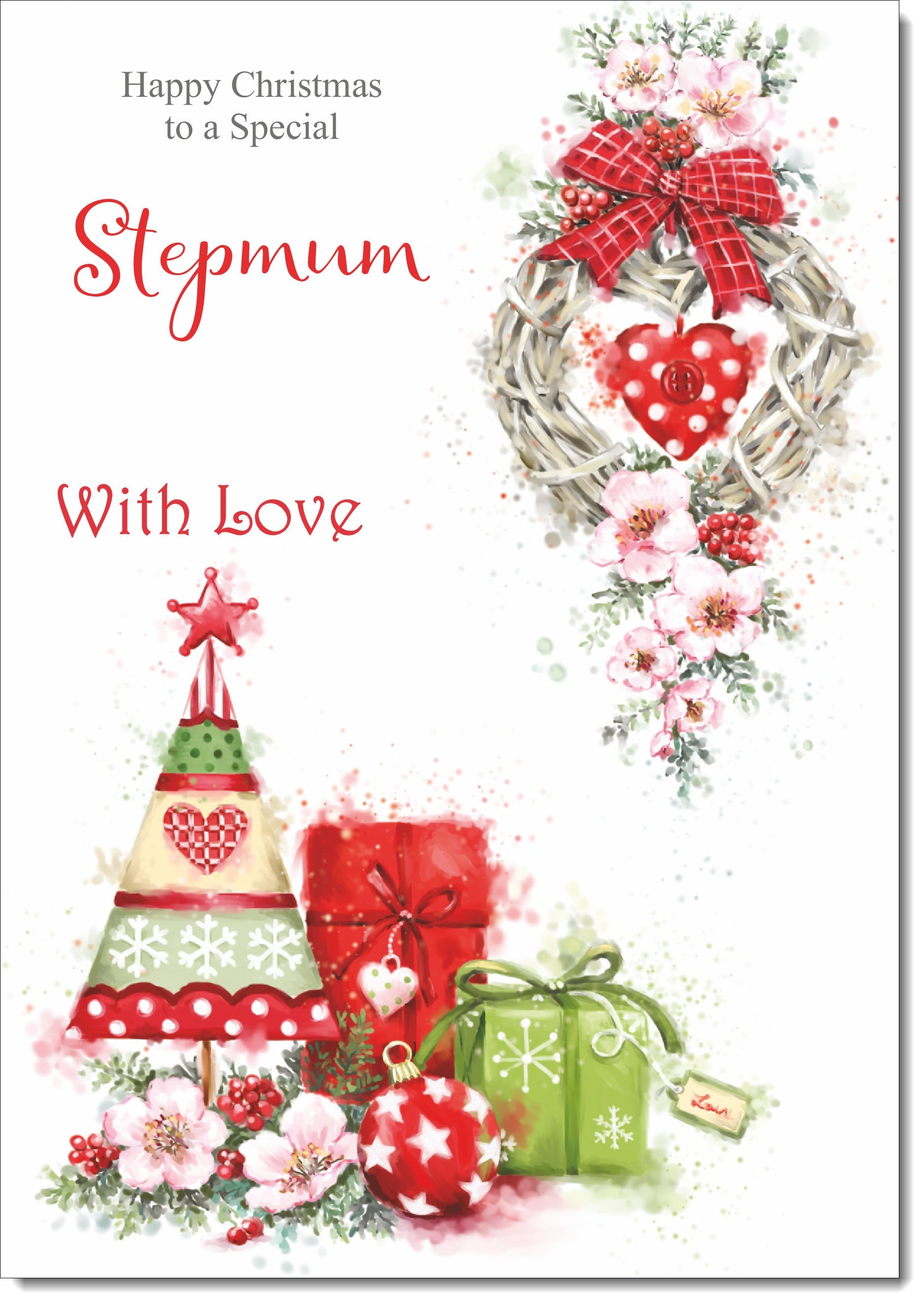 Stepmum Christmas Card Hanging Heart Decoration