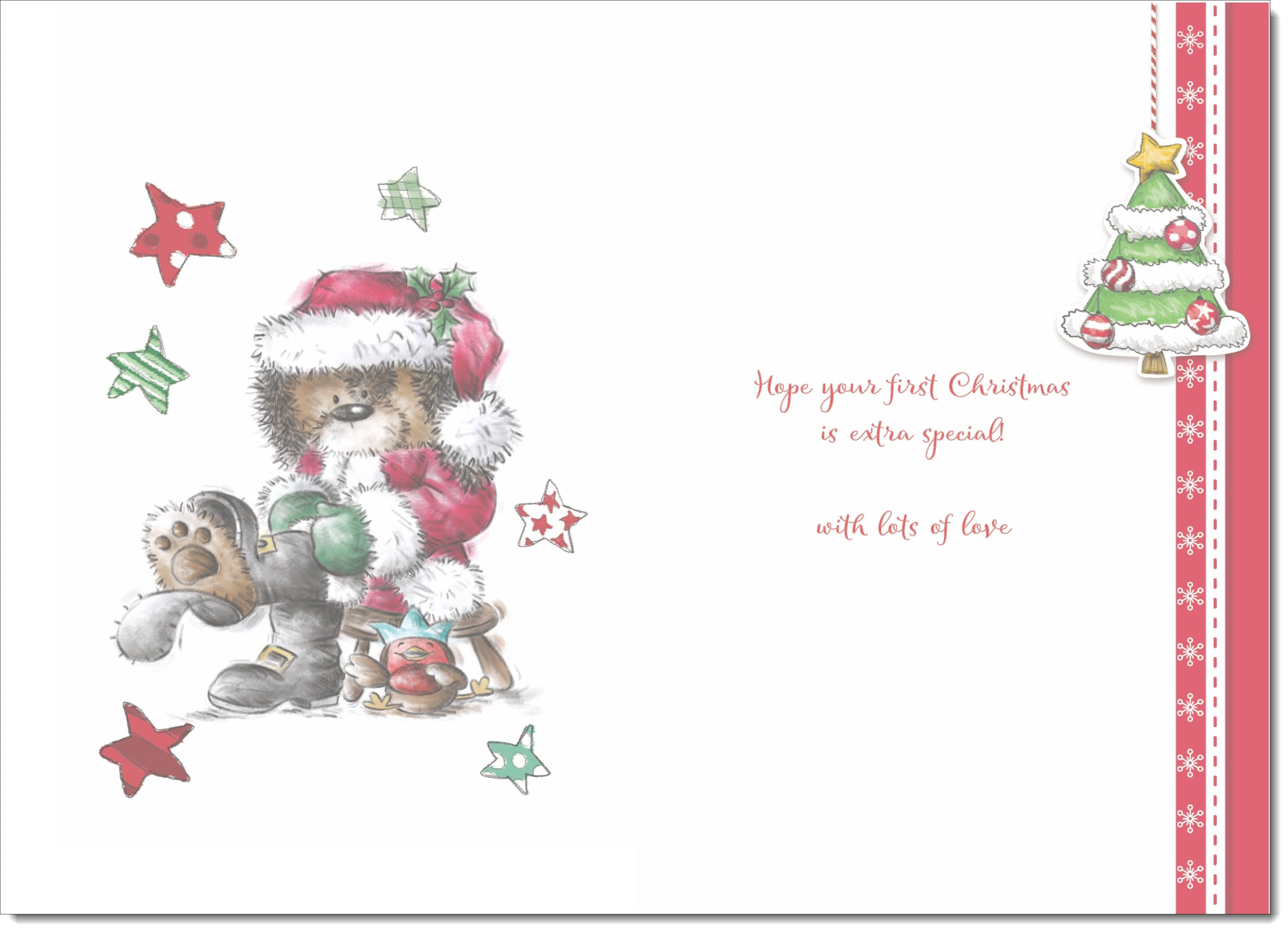 Granddaughters 1st Christmas Card Funny Santa Bear and Broken Boot