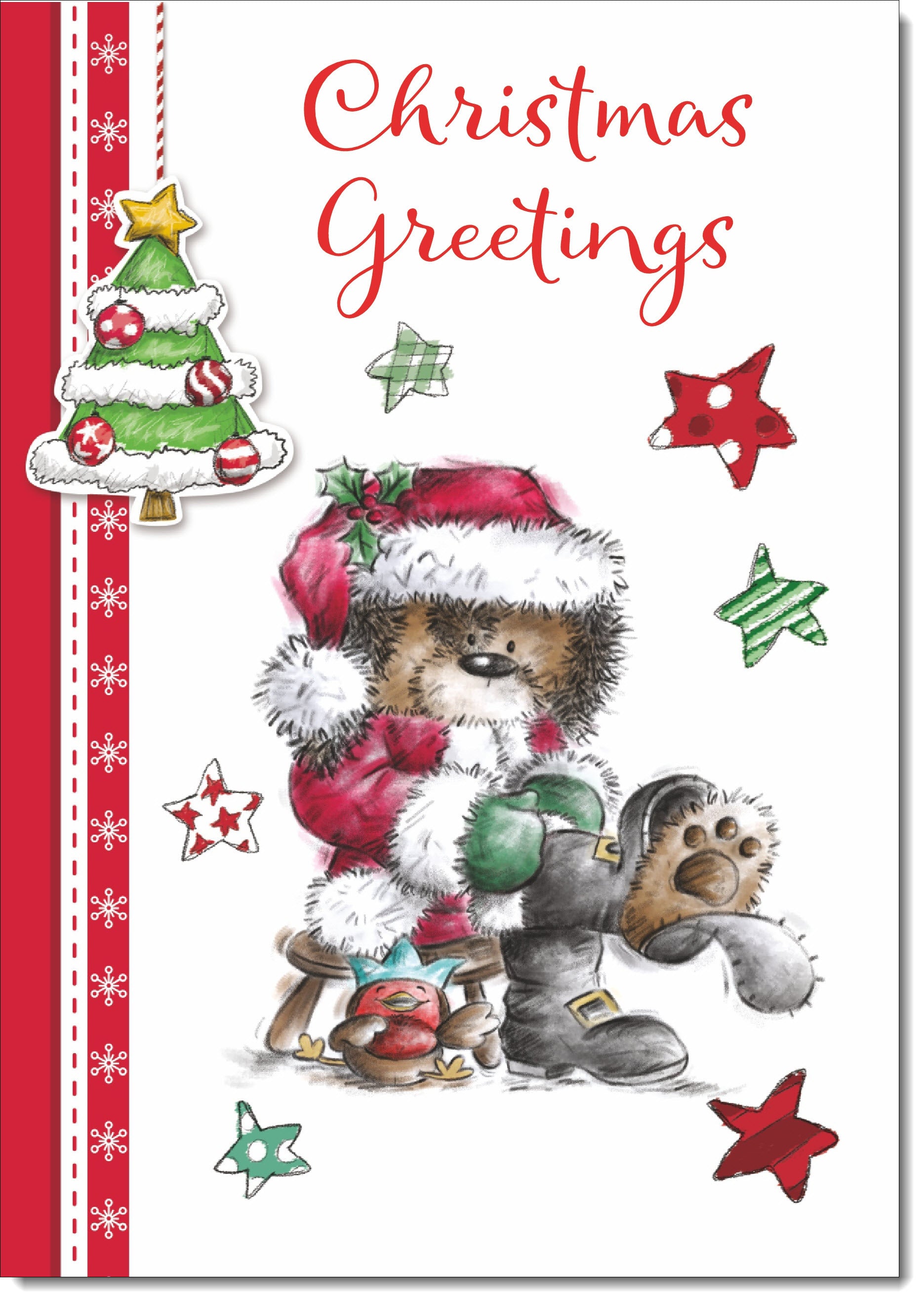 Christmas Greetings Christmas Card Funny Santa Bear and Broken Boot