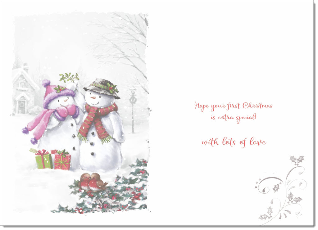 Grandsons 1st Christmas Card Snowman Couple