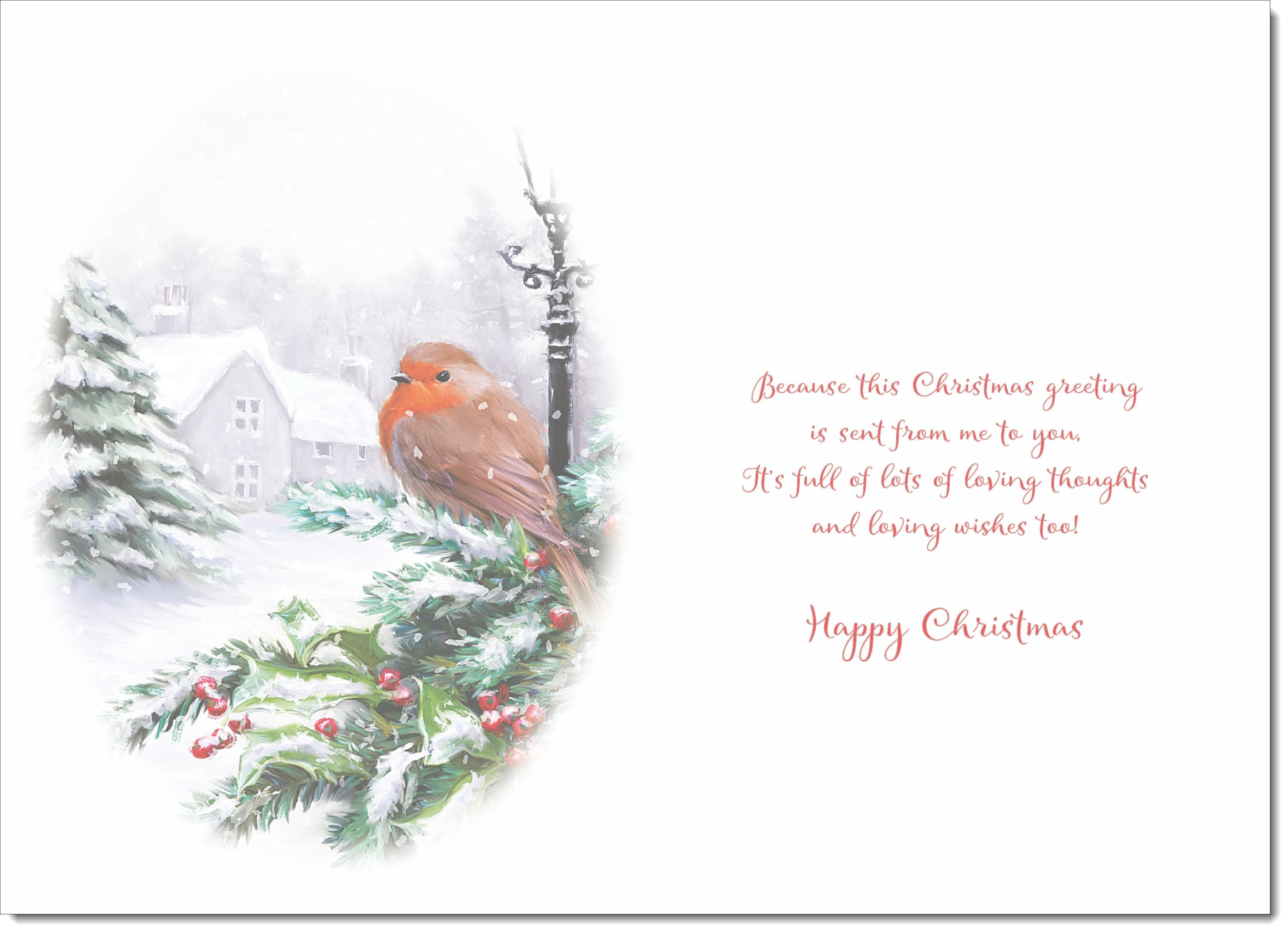 Fiance Christmas Card Robin in Winter Scene
