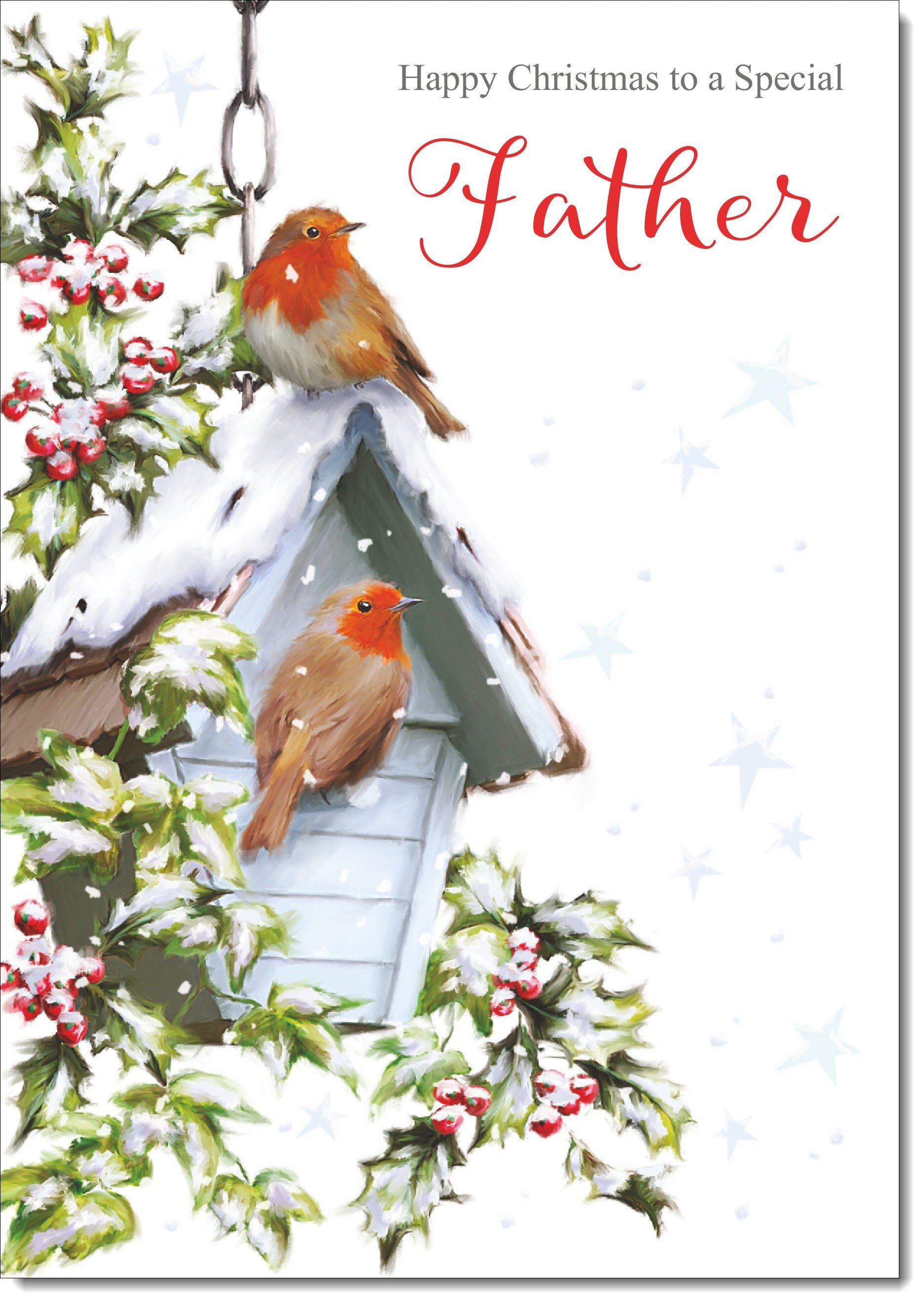 Father Christmas Card Two Robins in Snow