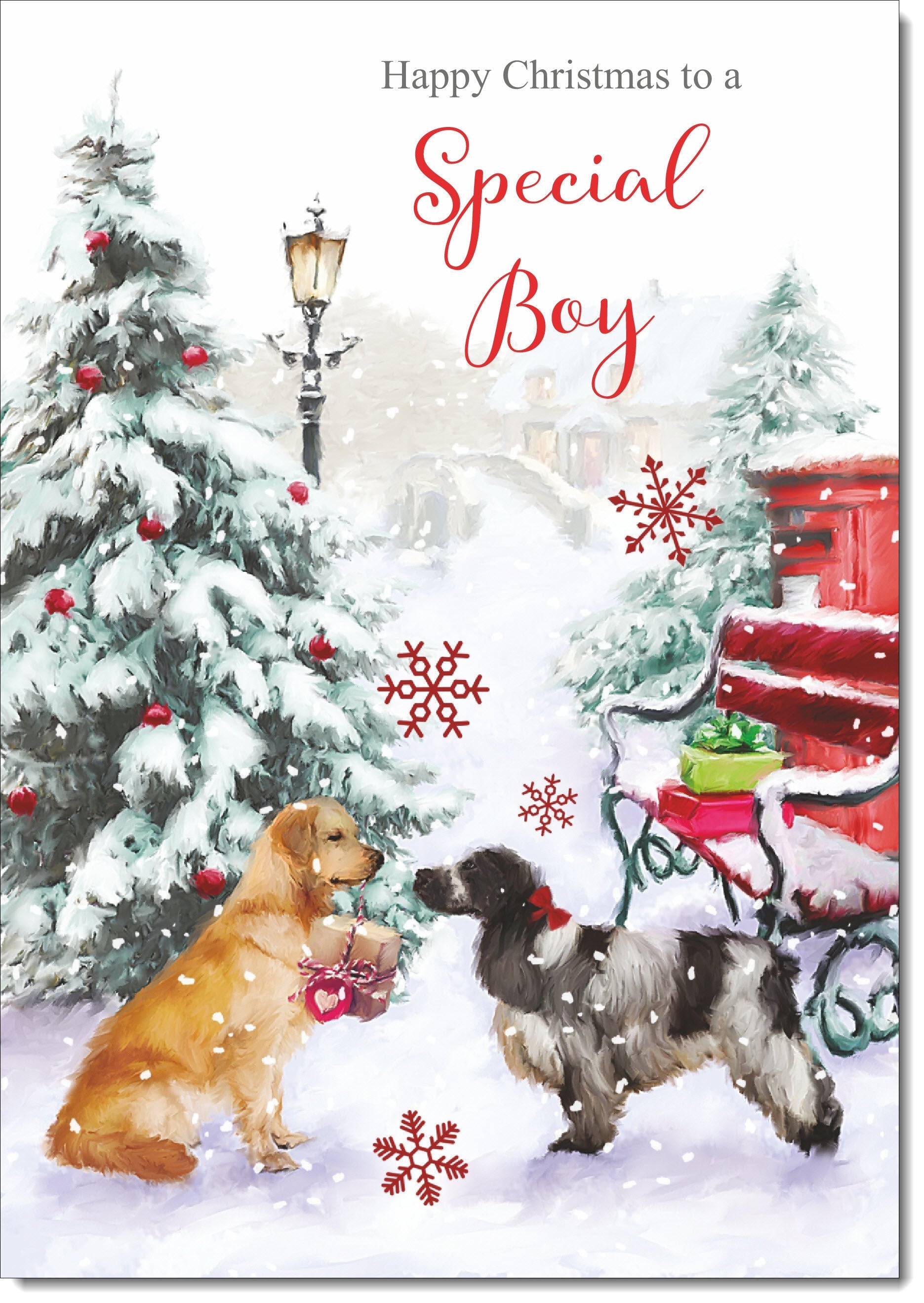 Special Boy Christmas Card Two Dogs in Snow