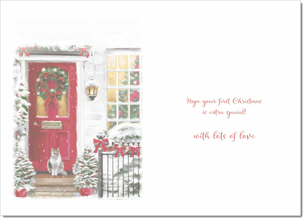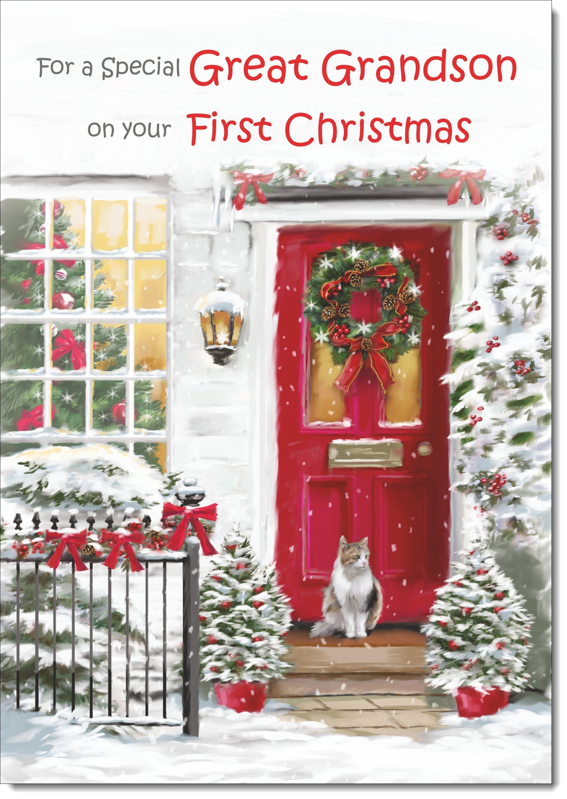 Great Grandsons 1st Christmas Card Cat by Snowy Red Door