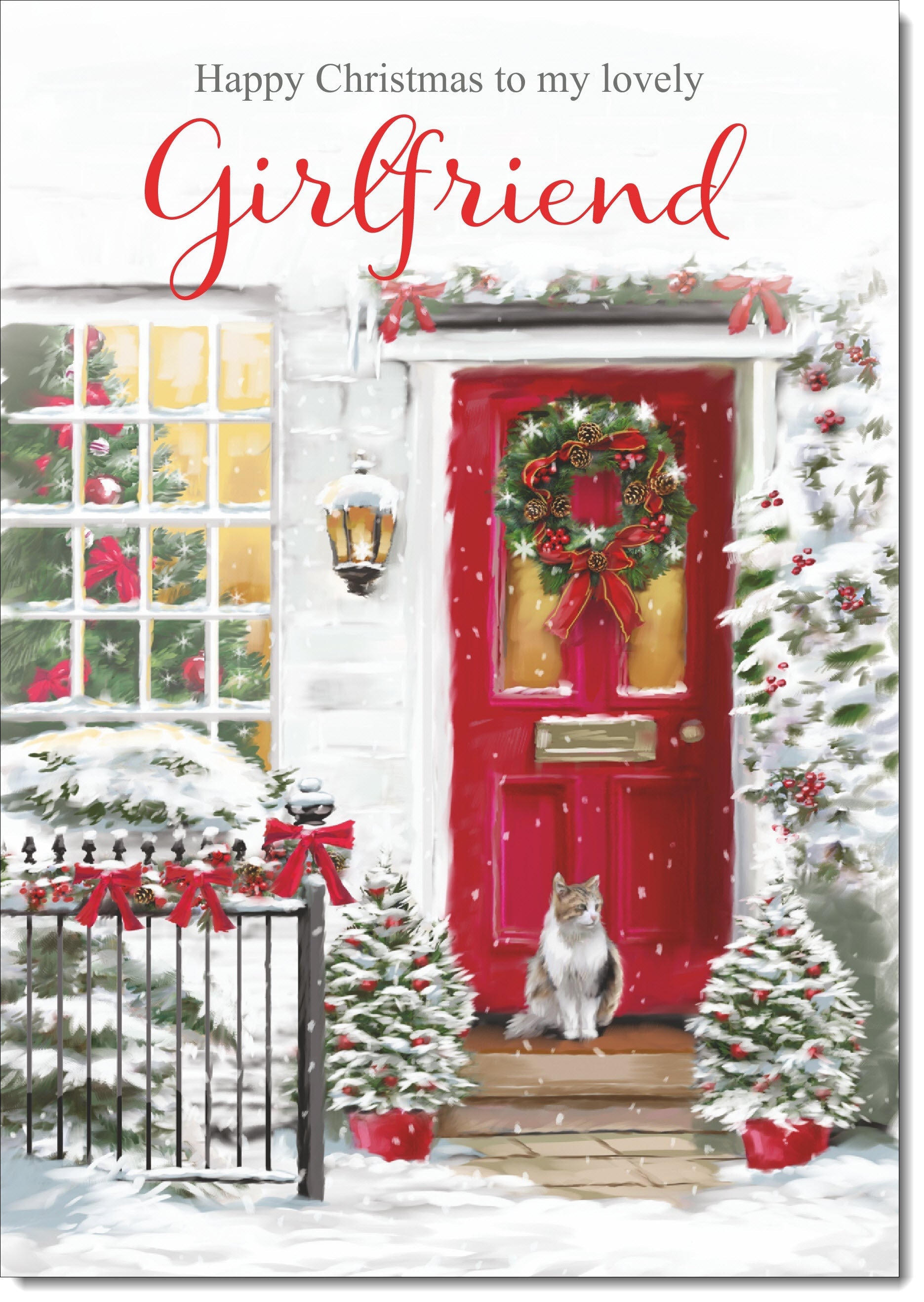 Girlfriend Christmas Card Cat by Snowy Red Door