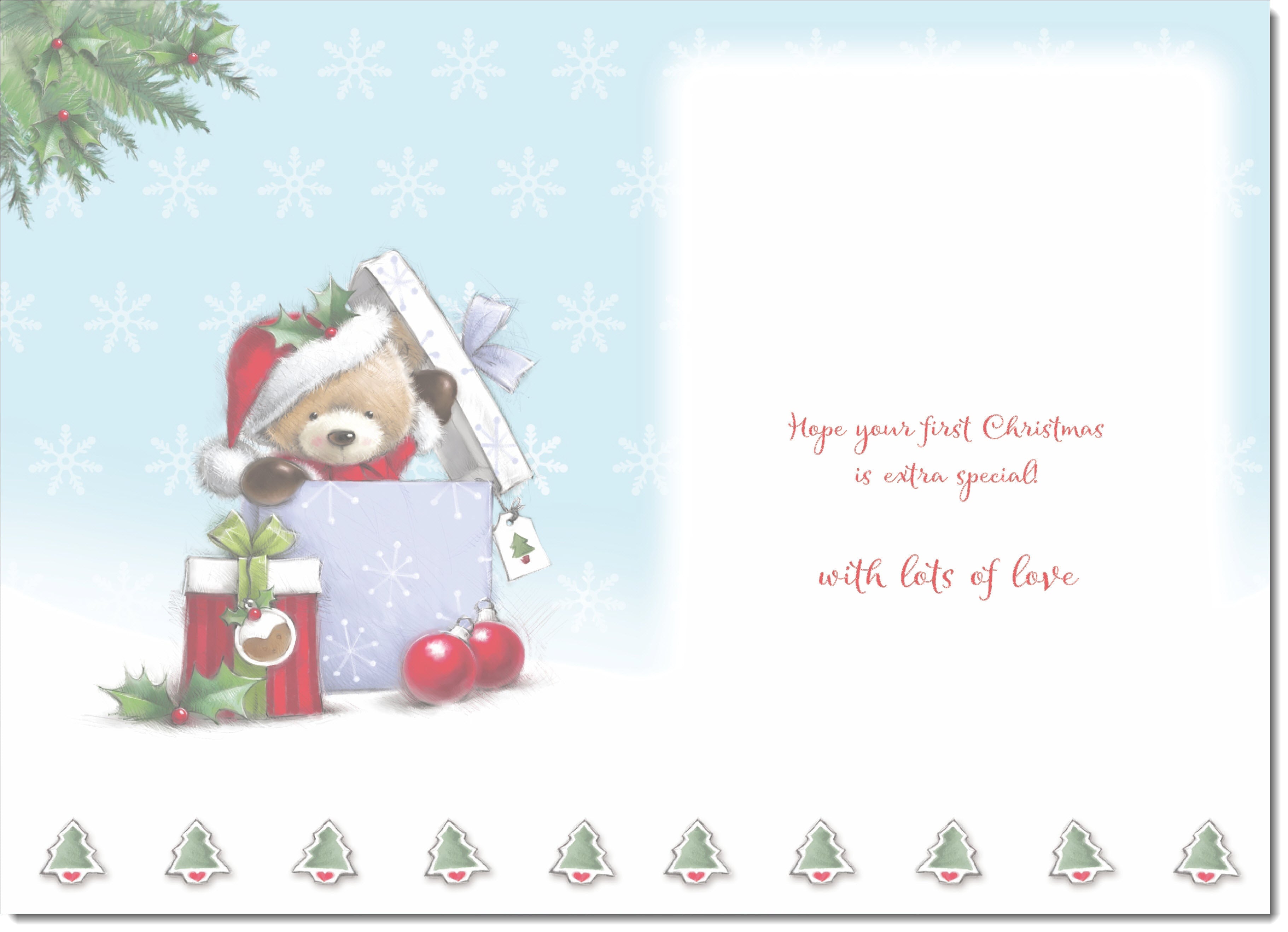 Great Grandsons 1st Christmas Card Cute Bear in Christmas Parcel