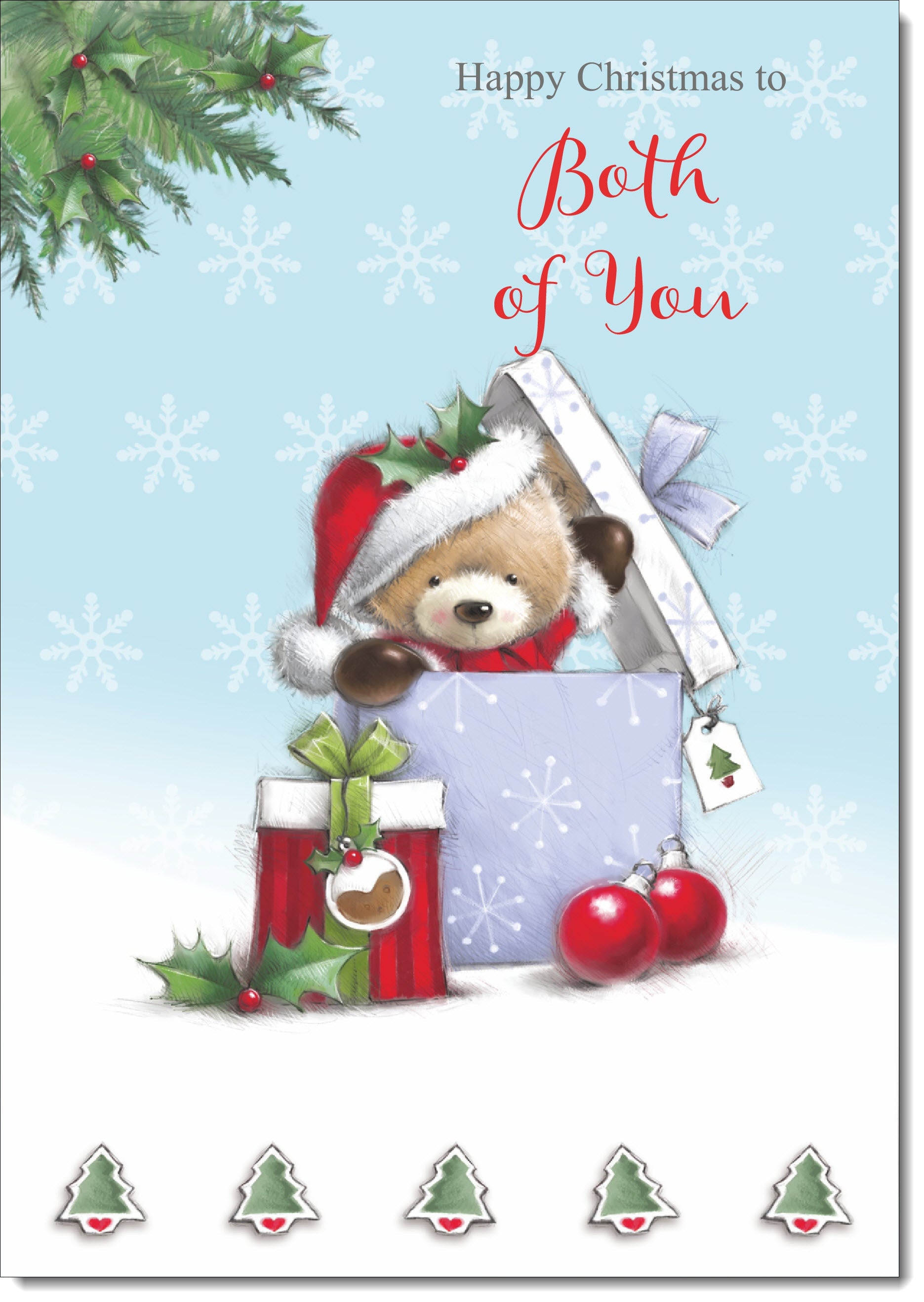 To Both of You Christmas Card Cute Bear in Christmas Parcel