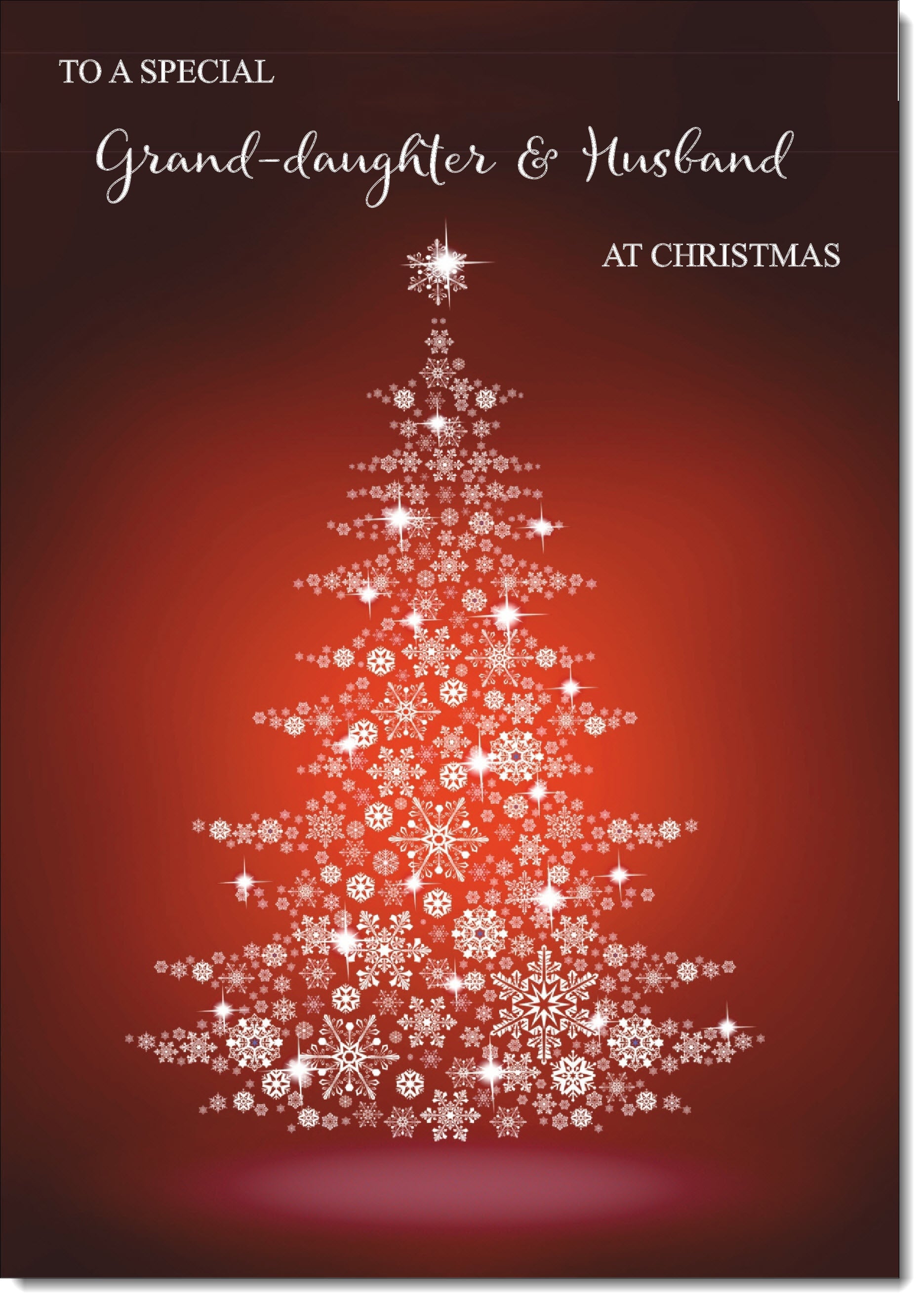 Granddaughter & Husband Christmas Card Red Snowflake Christmas Tree