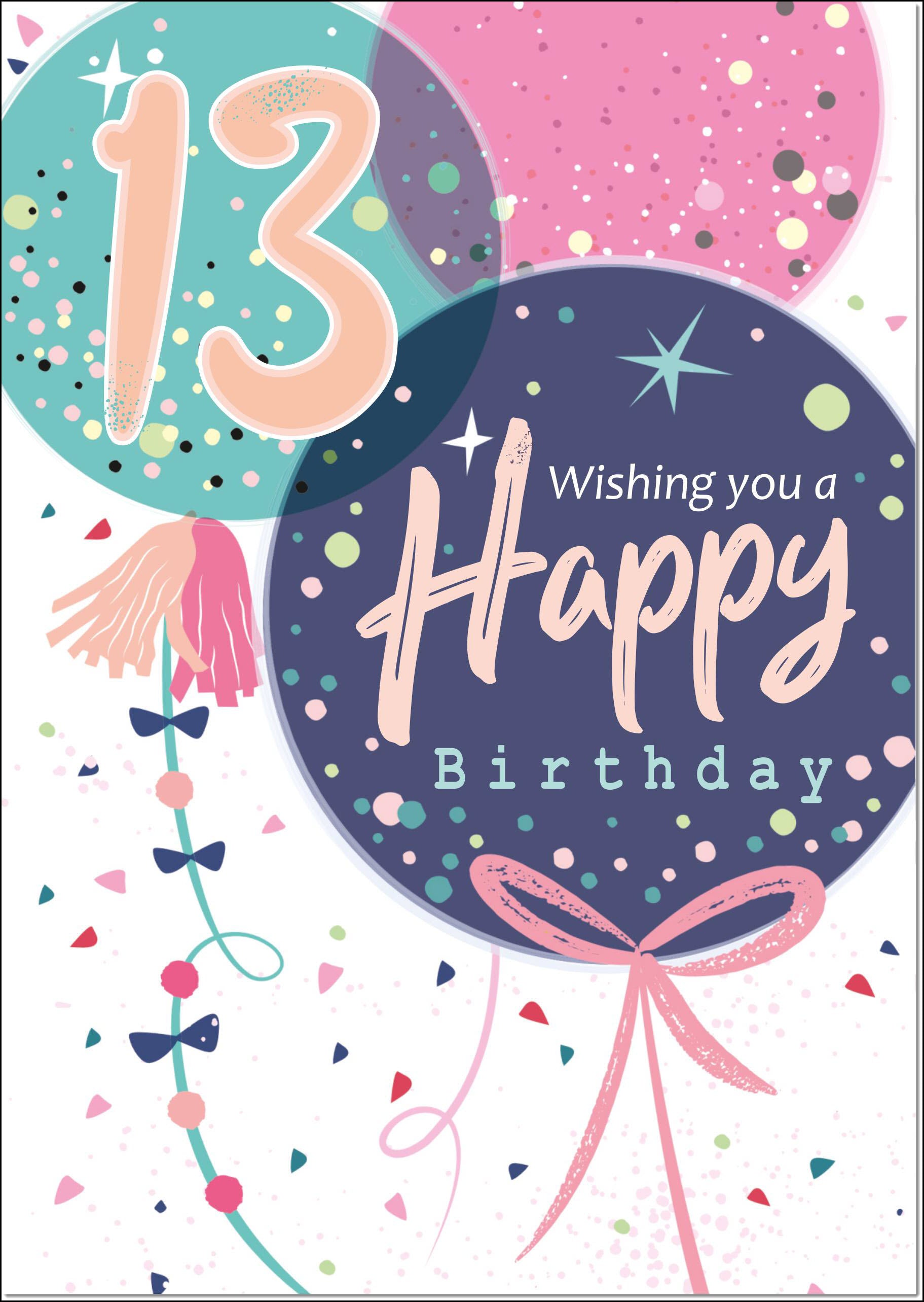 13th Birthday Card Age 13 for Girl Confetti Happy Birthday Balloons