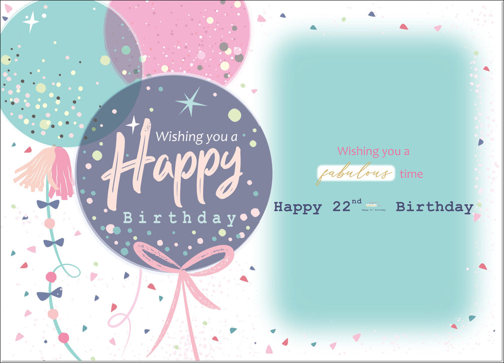 22nd Birthday Card Age 22 for Her Confetti Happy Birthday Balloons