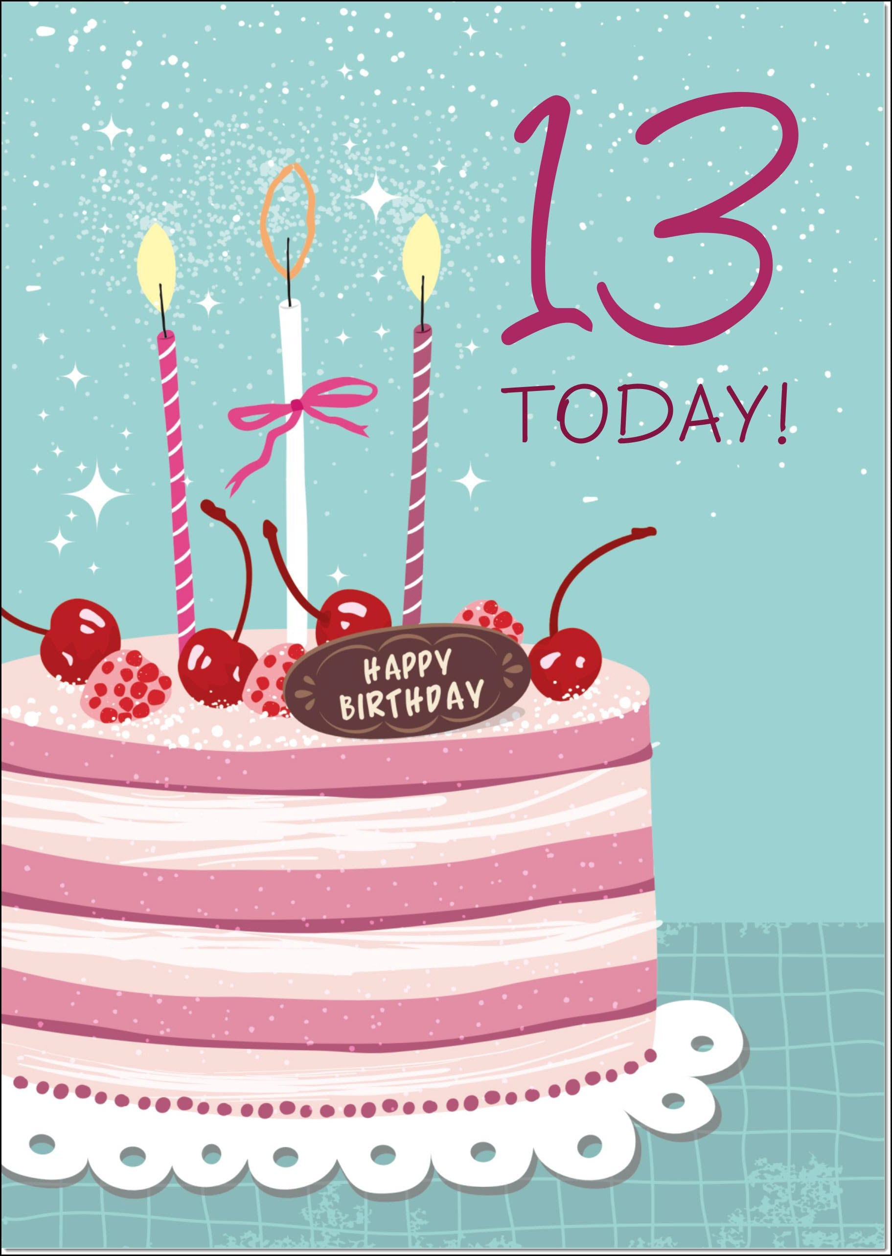 13th Birthday Card Age 13 for Girl Cherry Birthday Cake and Candles