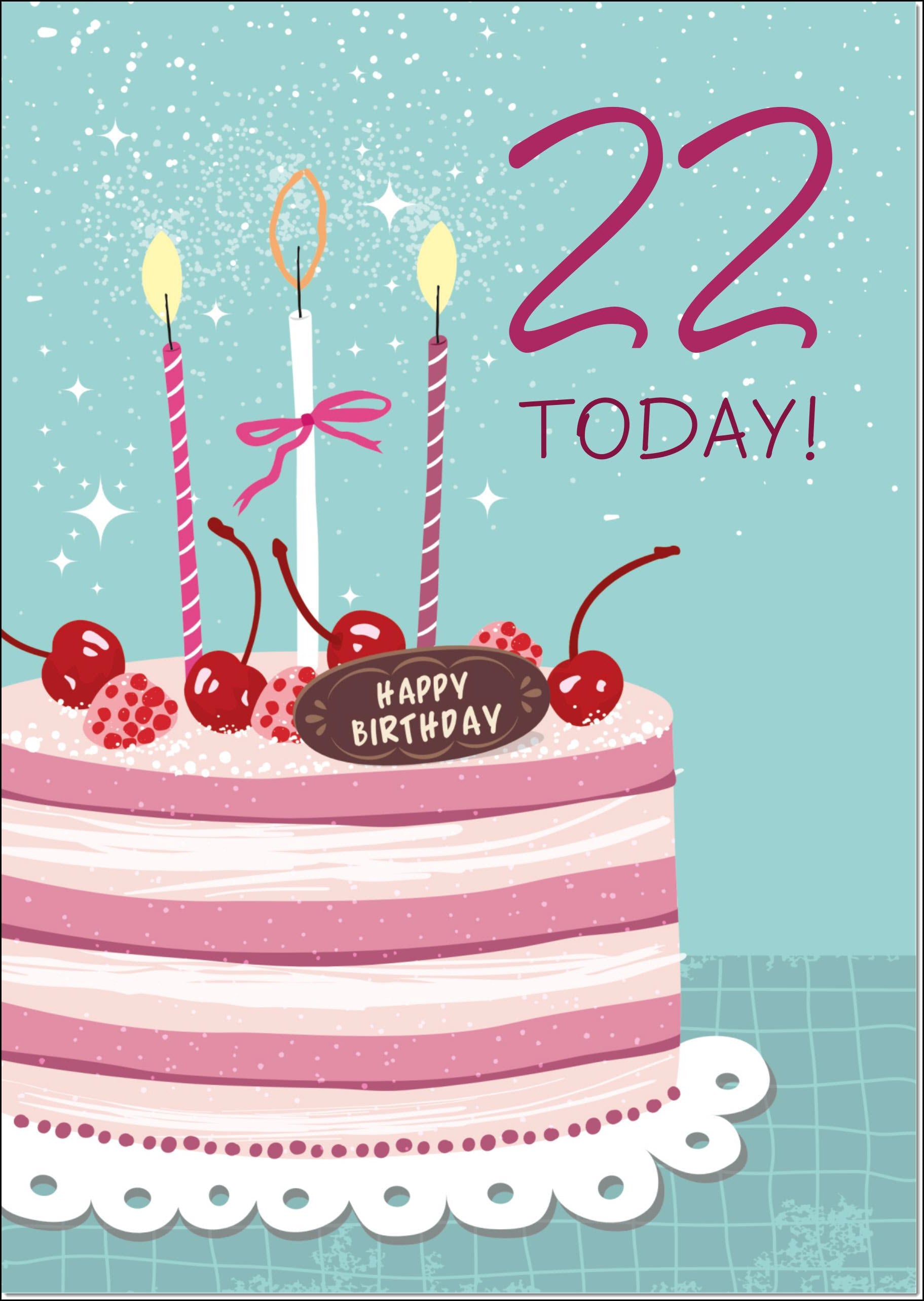 22nd Birthday Card Age 22 for Her Cherry Birthday Cake and Candles