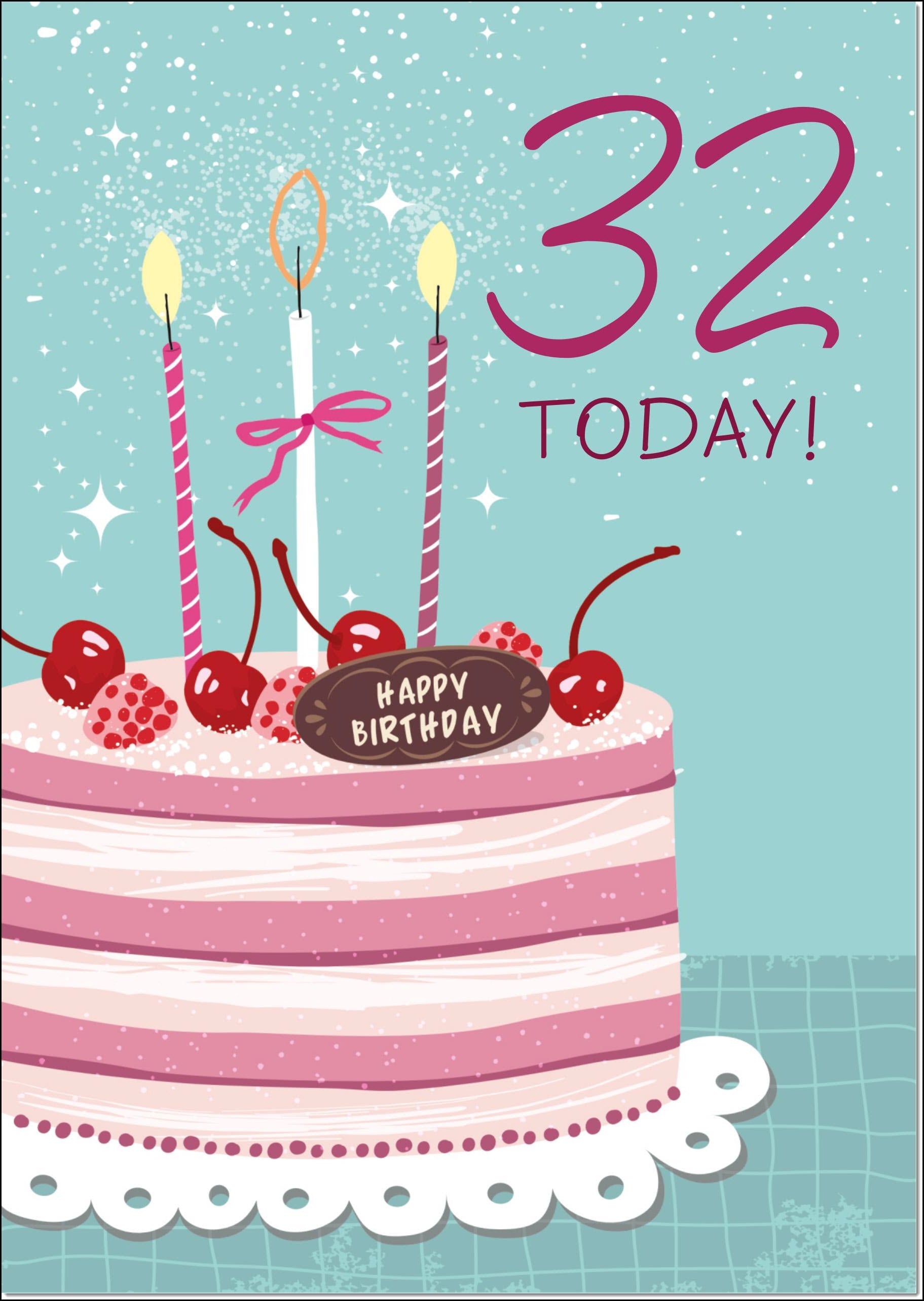 32nd Birthday Card Age 32 for Her Cherry Birthday Cake and Candles