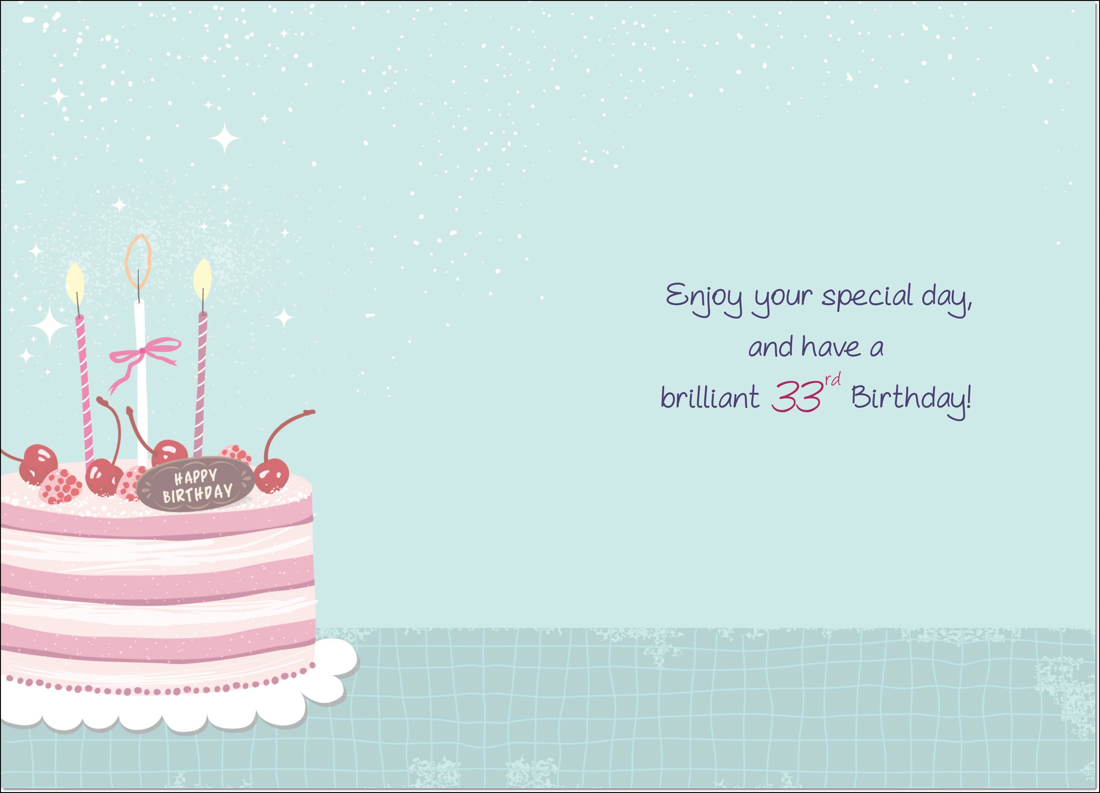 33rd Birthday Card Age 33 for Her Cherry Birthday Cake and Candles