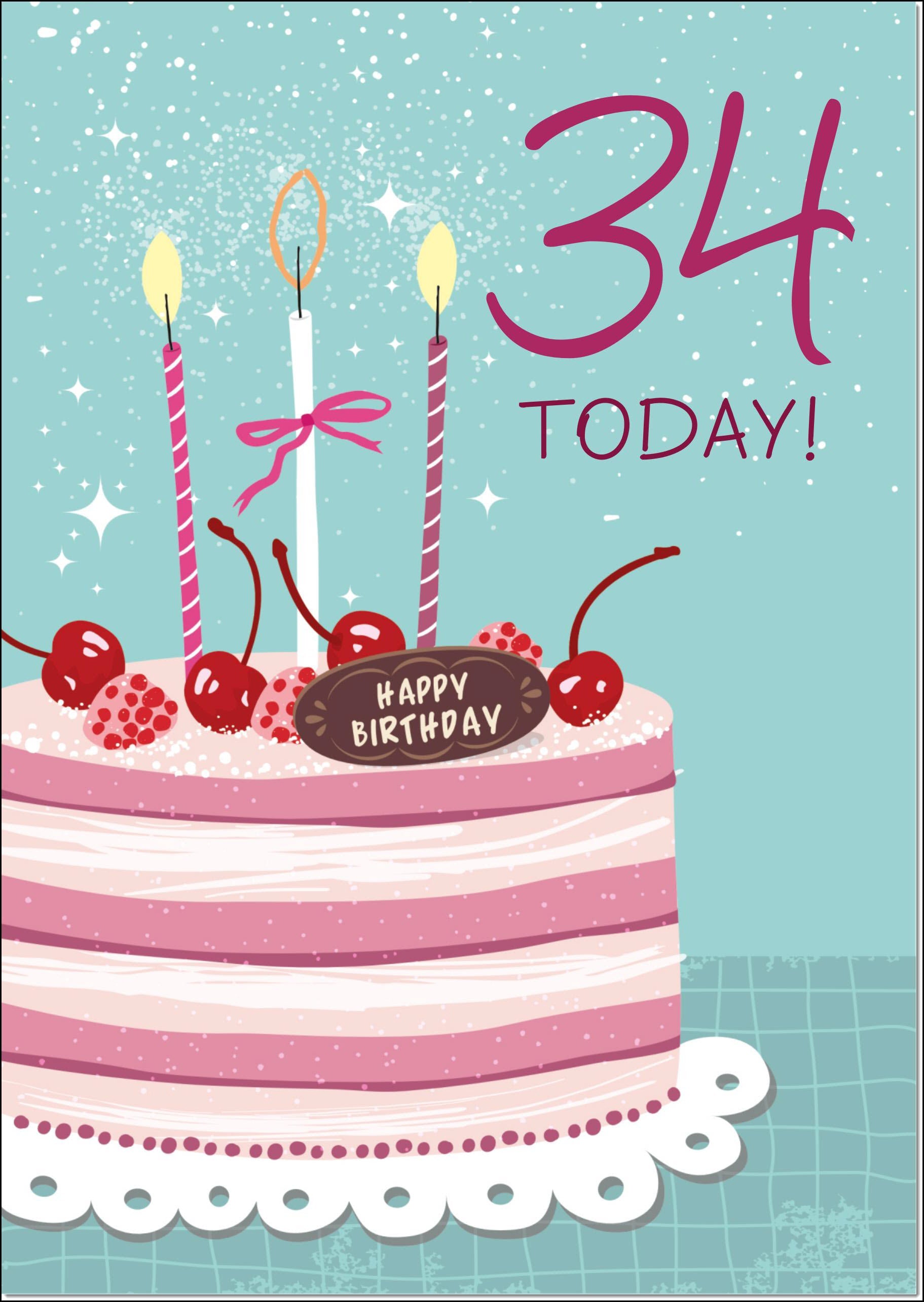 34th Birthday Card Age 34 for Her Cherry Birthday Cake and Candles