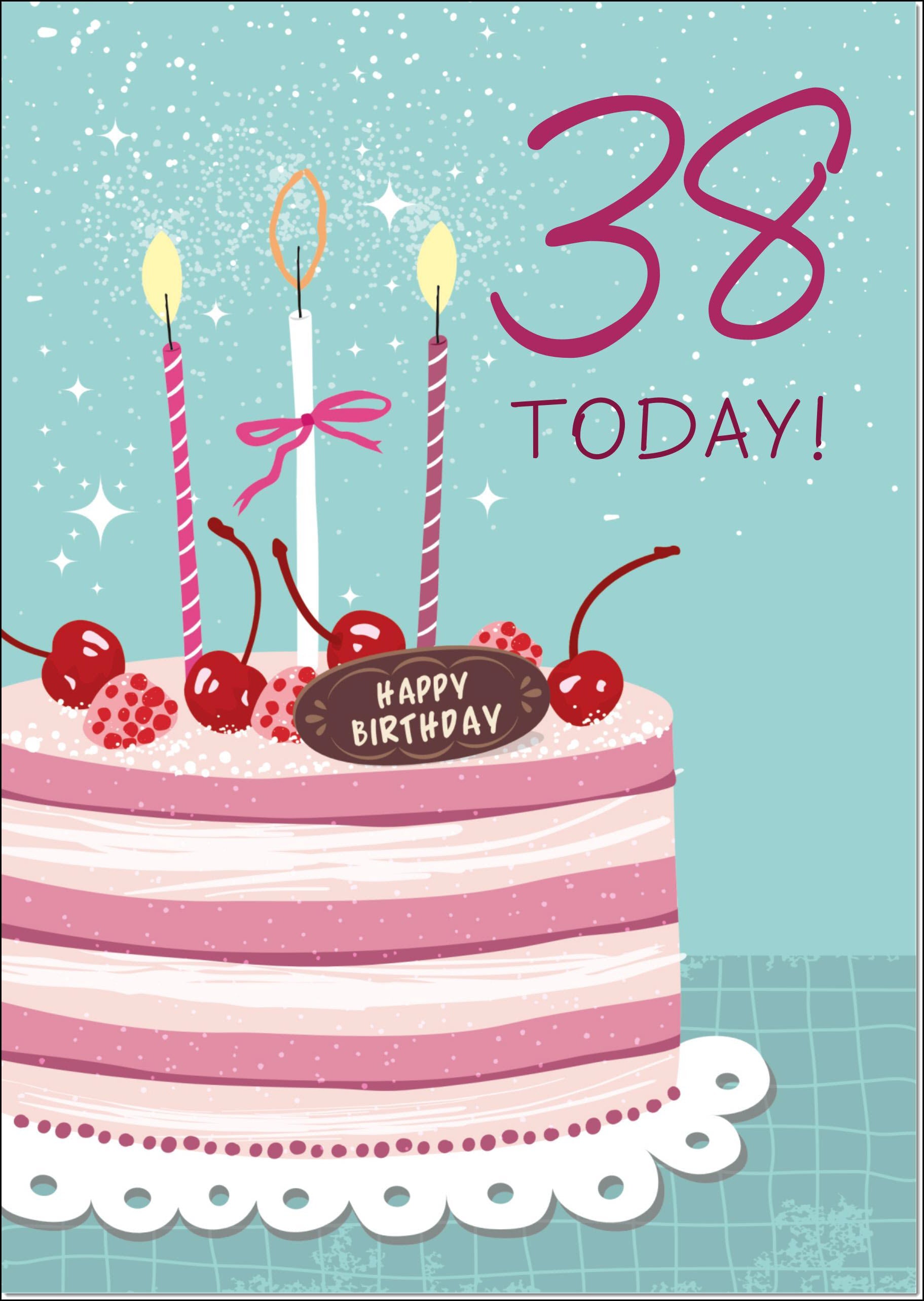 38th Birthday Card Age 38 for Her Cherry Birthday Cake and Candles