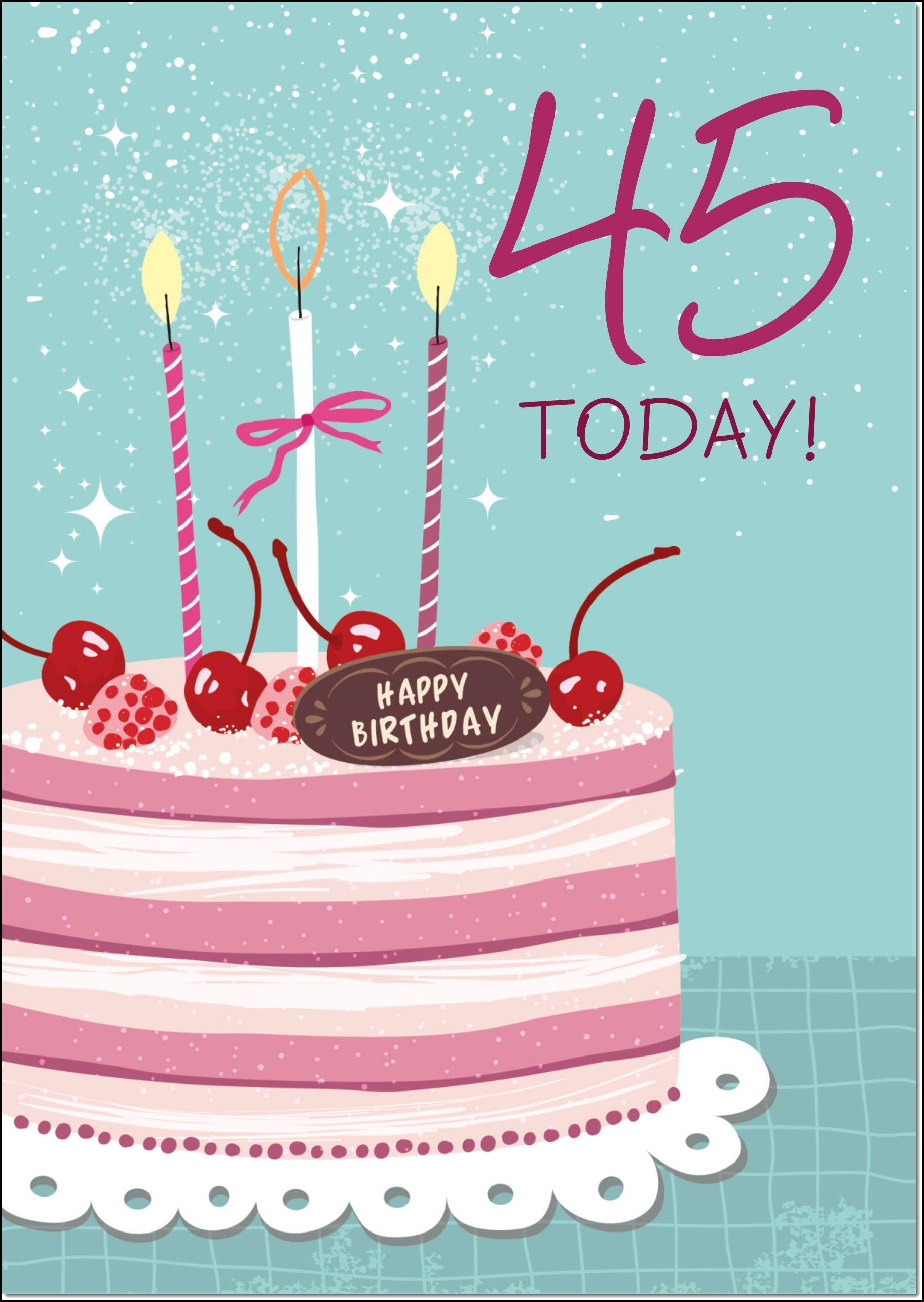 45th Birthday Card Age 45 for Her Cherry Birthday Cake and Candles