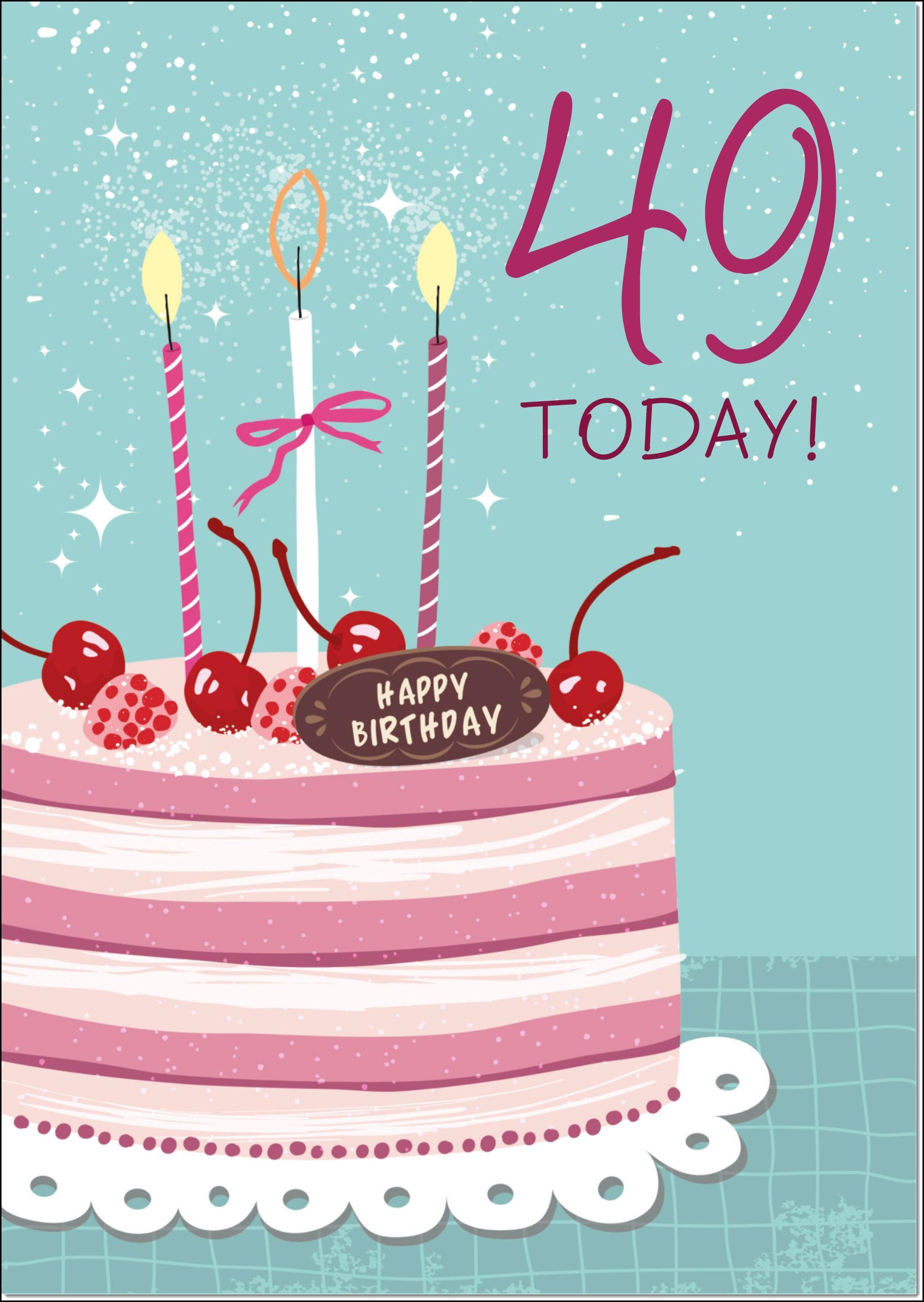 49th Birthday Card Age 49 for Her Cherry Birthday Cake and Candles