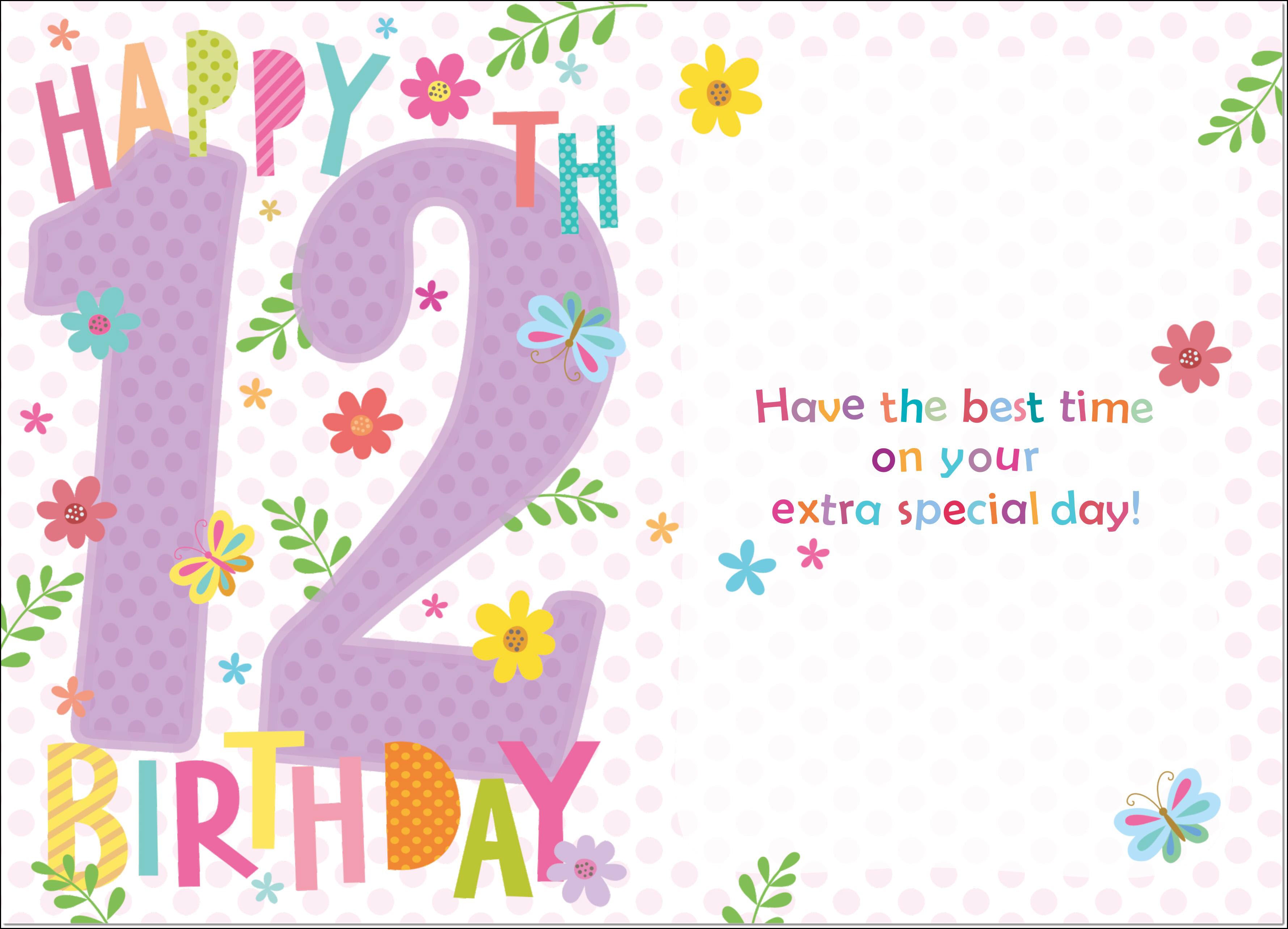 12th Birthday Card Age 12 for Girl Floral Numbers