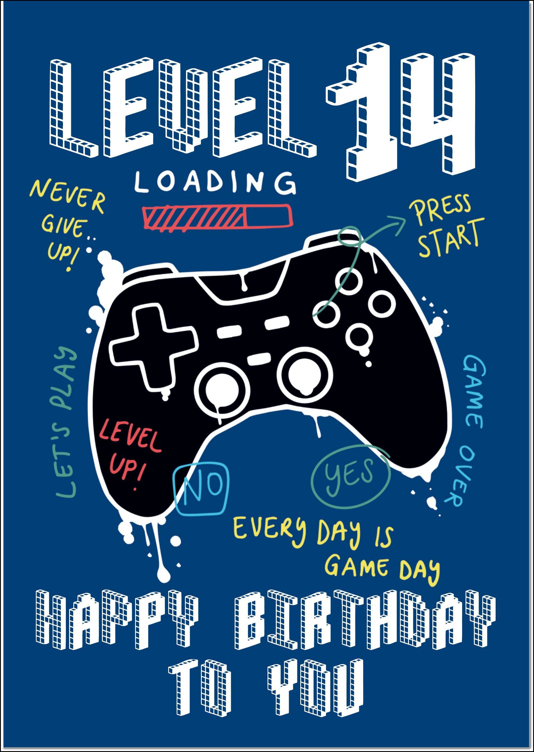 14th Birthday Card Age 14 for Boy Level Up Gaming Console