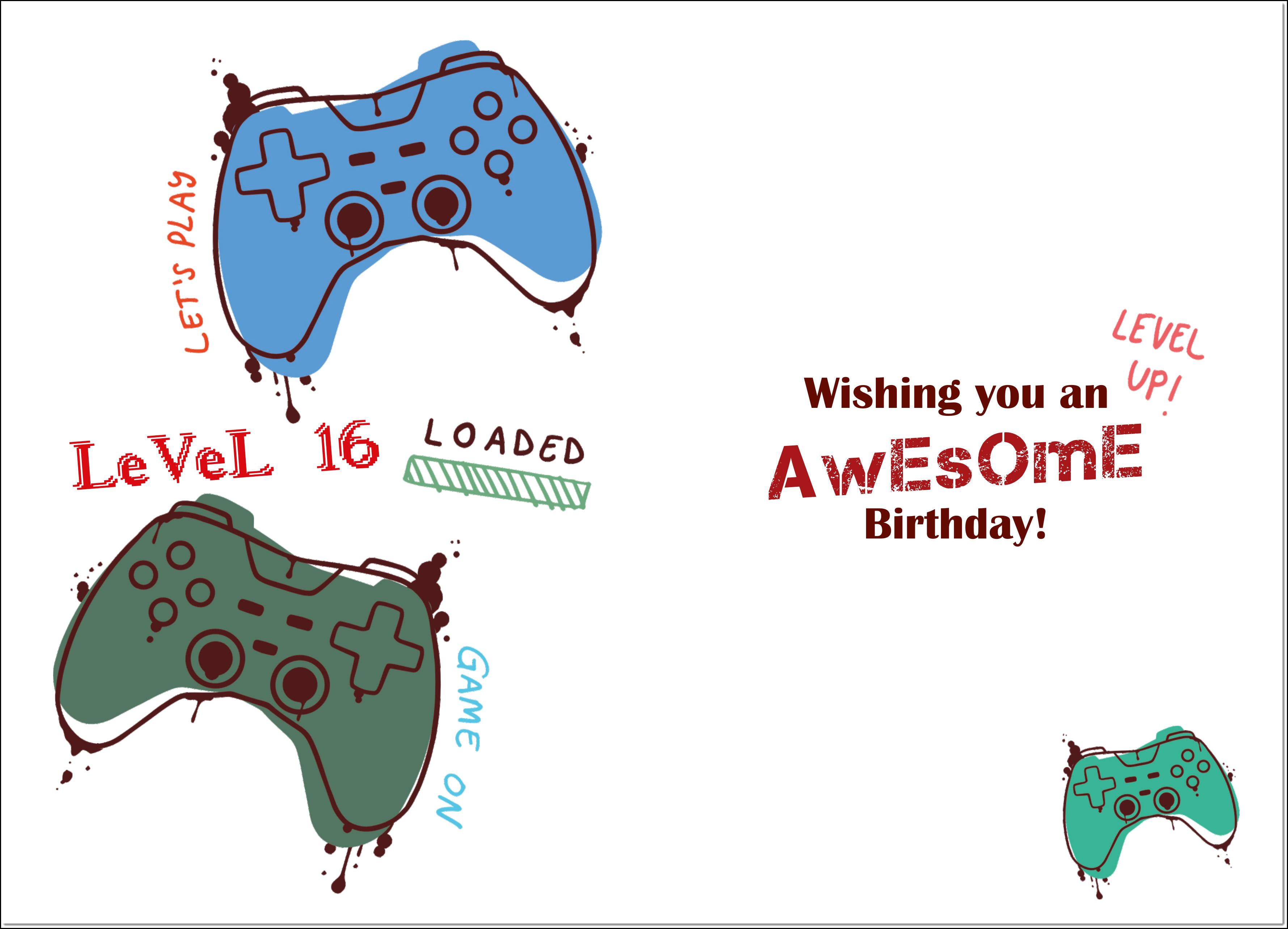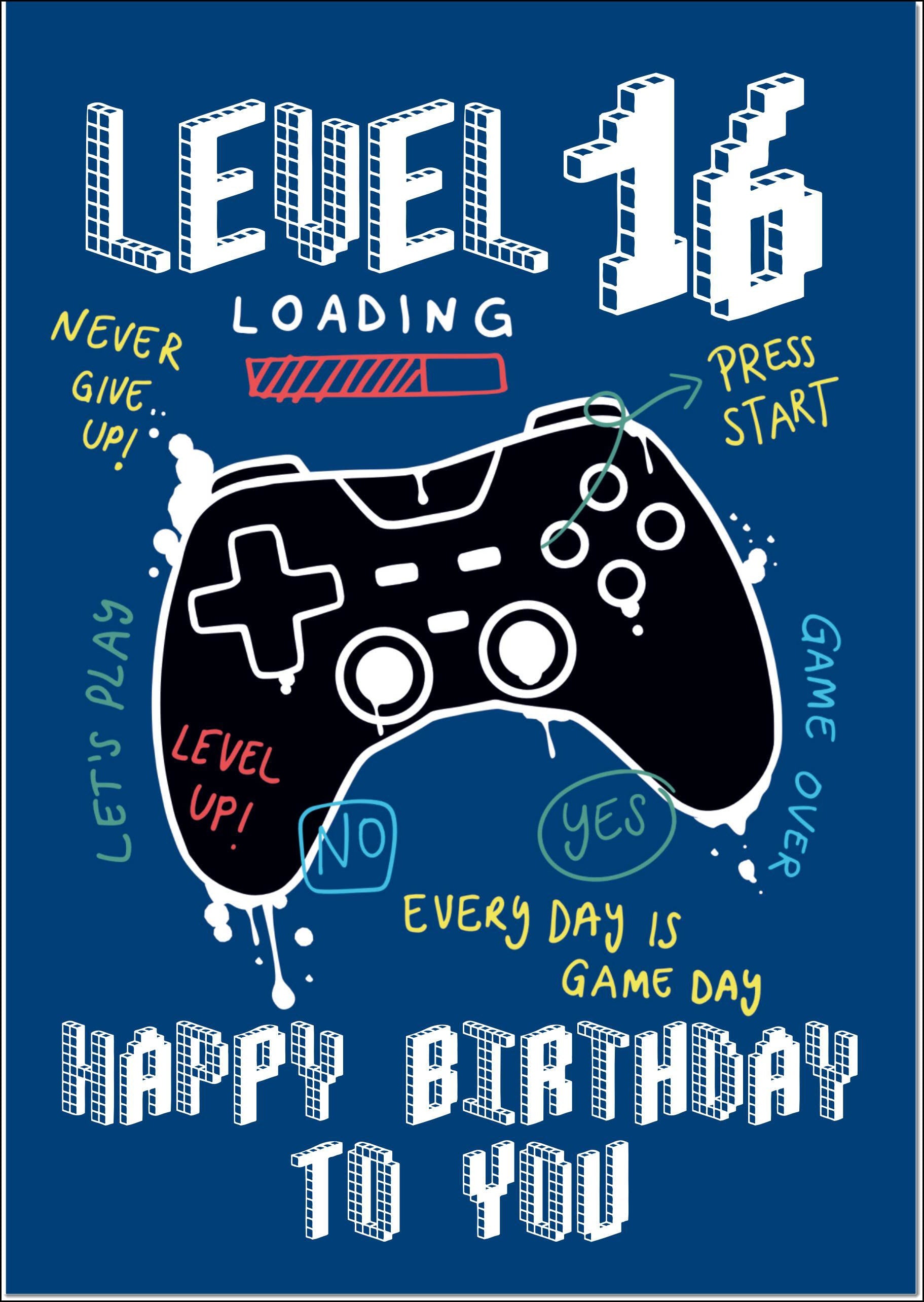 16th Birthday Card Age 16 for Him Level Up Gaming Console