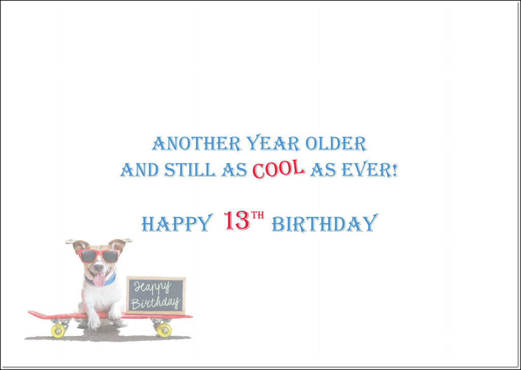 13th Birthday Card Age 13 for Boy Cool Skateboarding Jack Russell