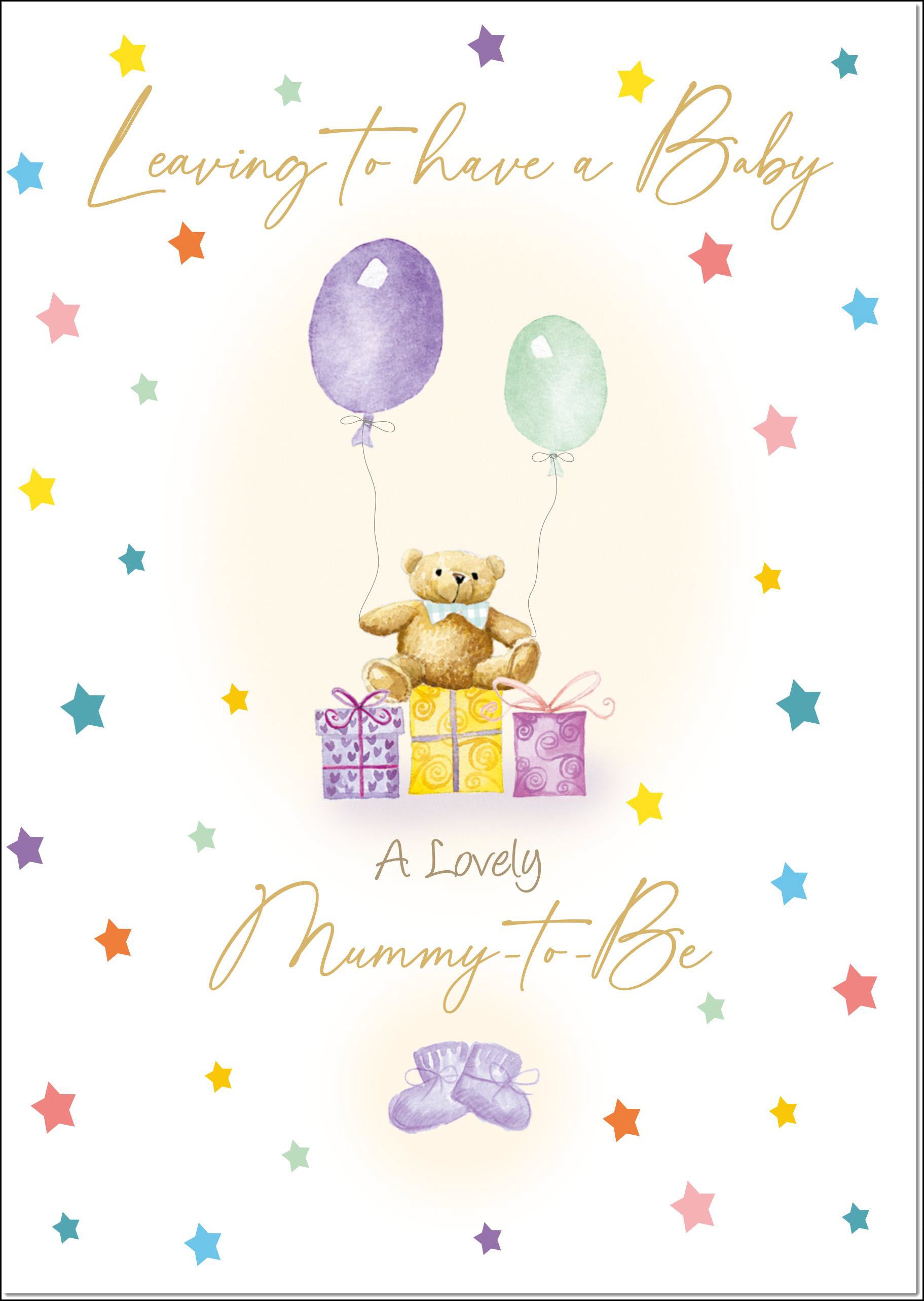 Leaving to have a Baby Card Teddy and Presents