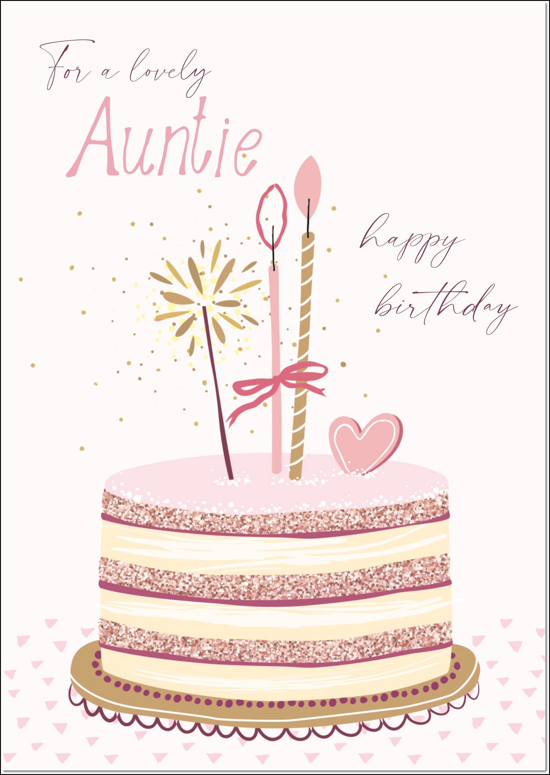 Auntie Birthday Card Pastel Pink Birthday Cake