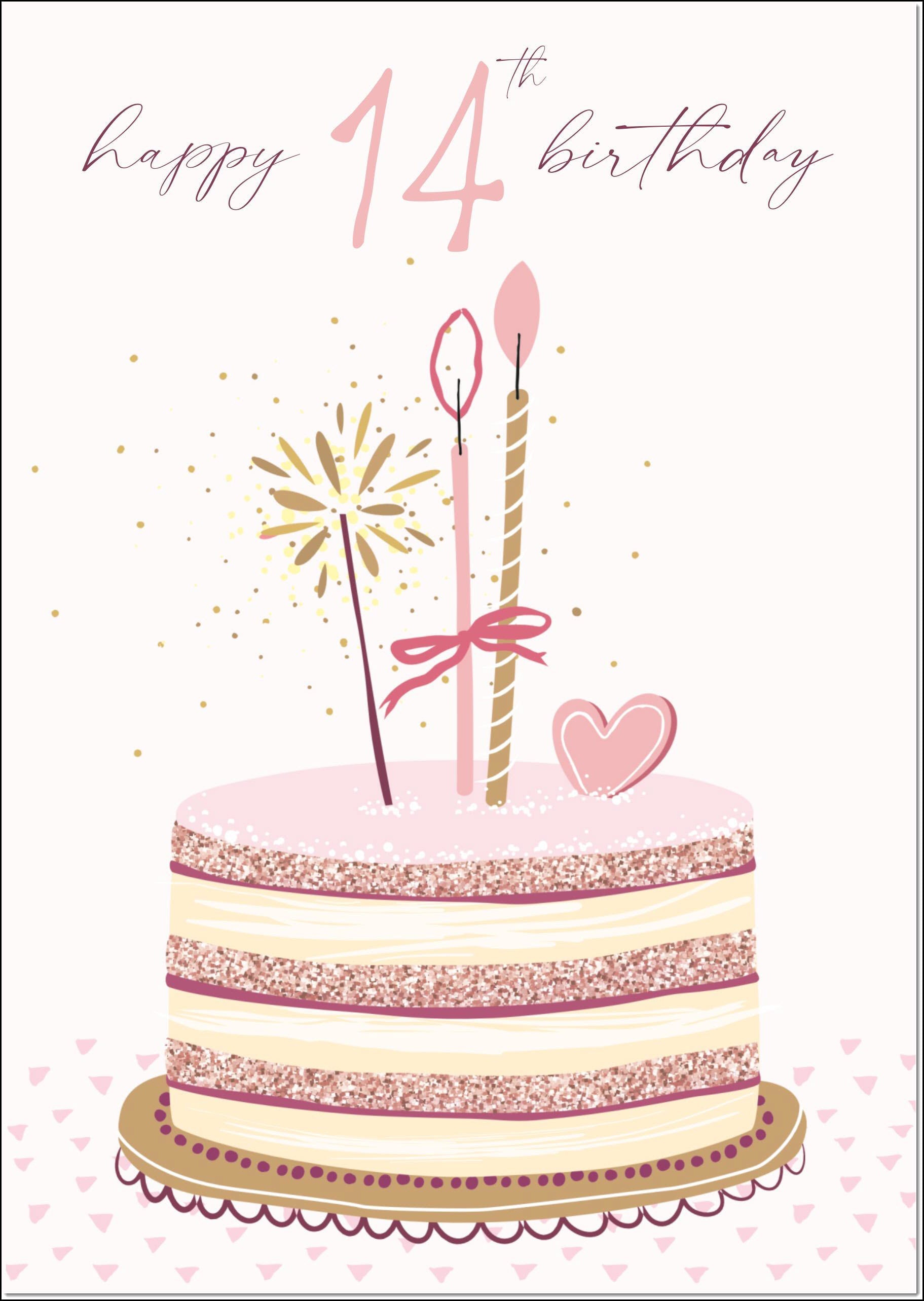 14th Birthday Card Age 14 for Girl Pastel Pink Birthday Cake